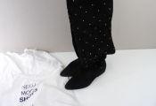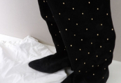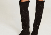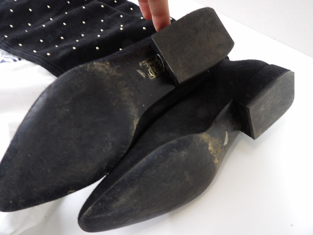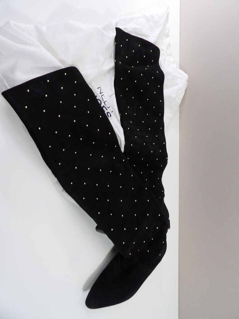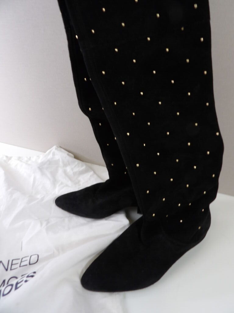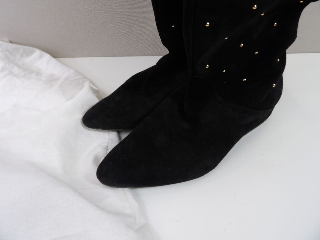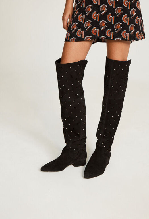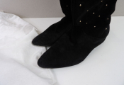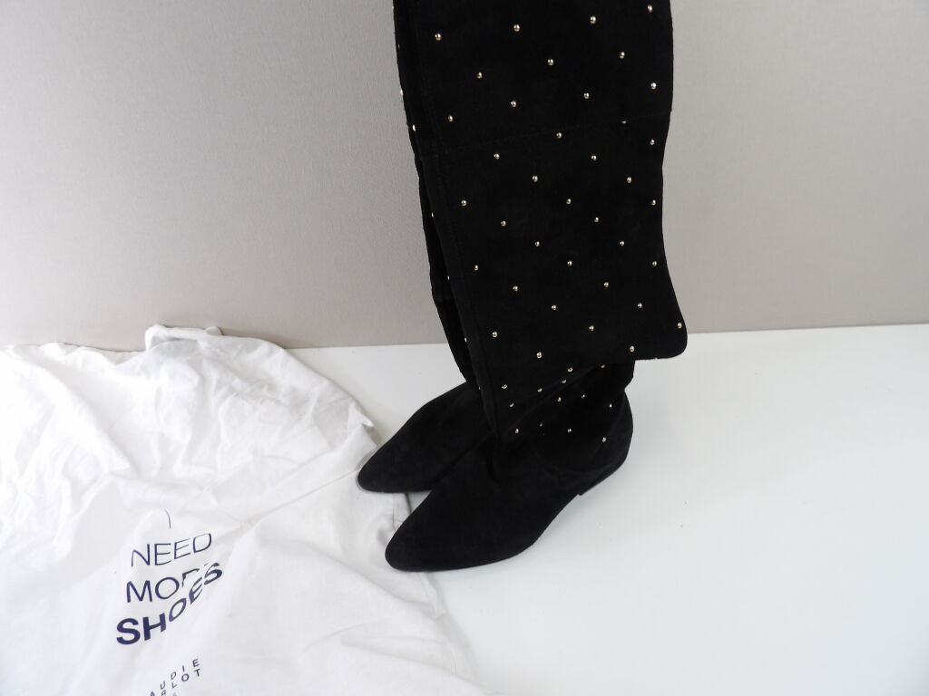 CLAUDIE PIERLOT - Cuissardes en cuir noir avec clous dorées, dans son dust bag.