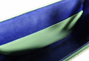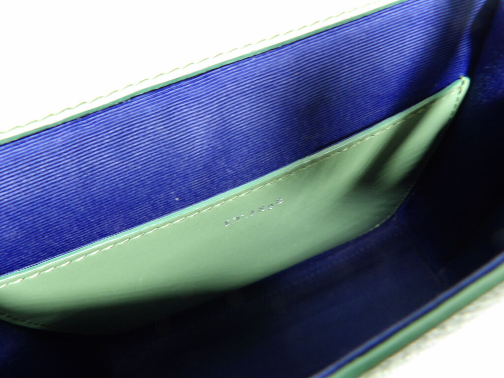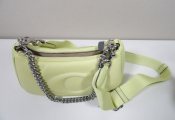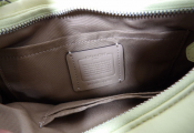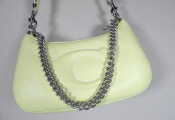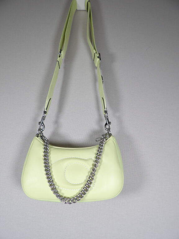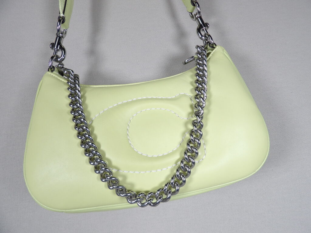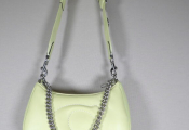 - Sac en cuir matelassé coloris vert pâle - Bandoulière en coton et chaine argentée - Dimensions: 25 x 15 x 8 cm