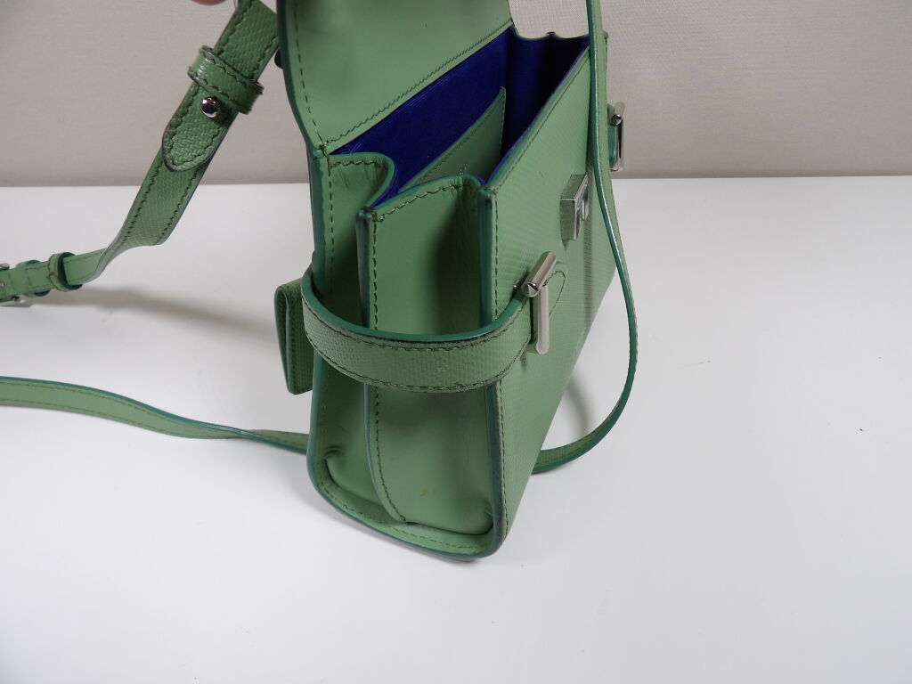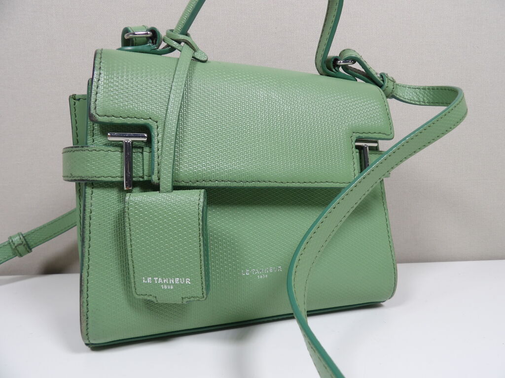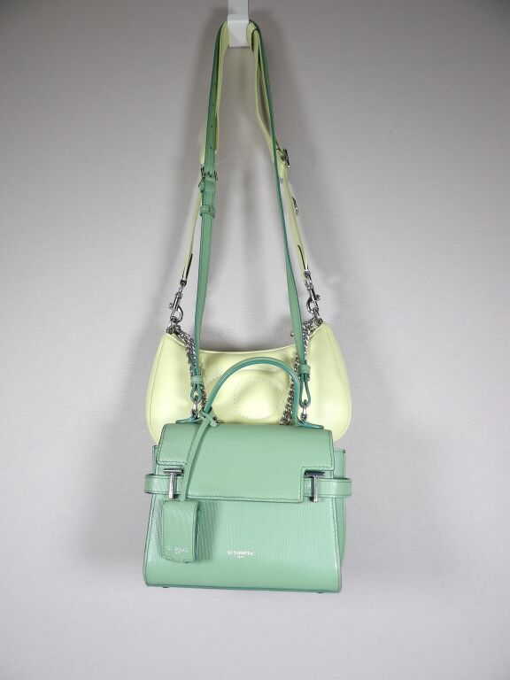 - Petit sac en cuir texturé vert - Anses et bandoulière - Dimensions: 20 x 18 x 7 cm