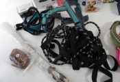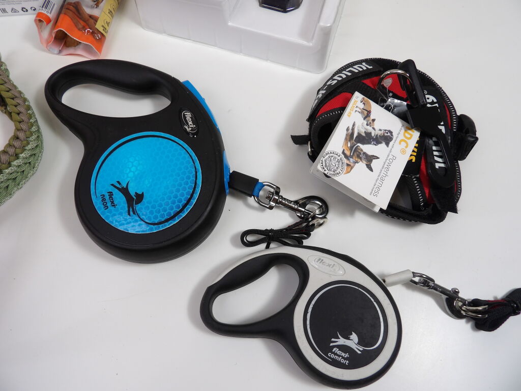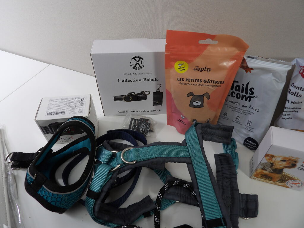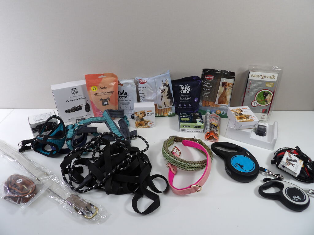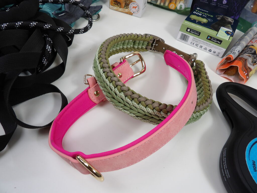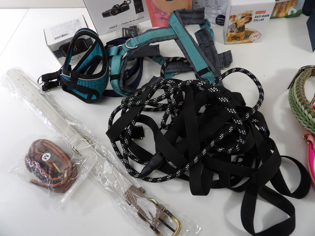 Colliers, laisses et autres accessoires pour CHIENS : Lot d'une quinzaine d'articles (neuf et occasion).