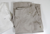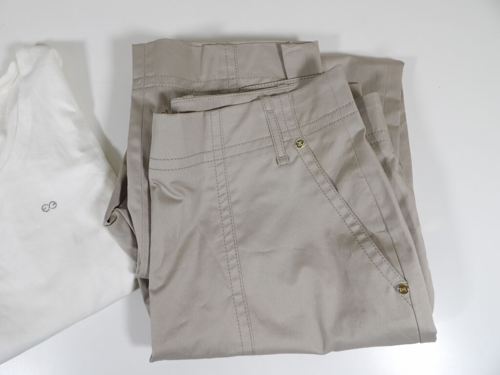 - Un pantalon droit, pas de poches à l'arrière, couleur smoky pearl - boutons et fermeture éclair couleur or - taille 44