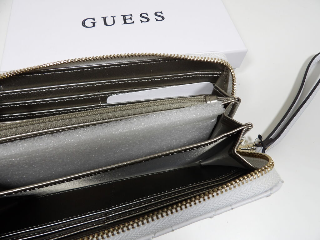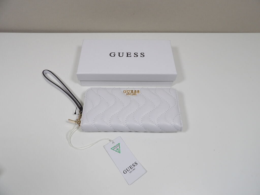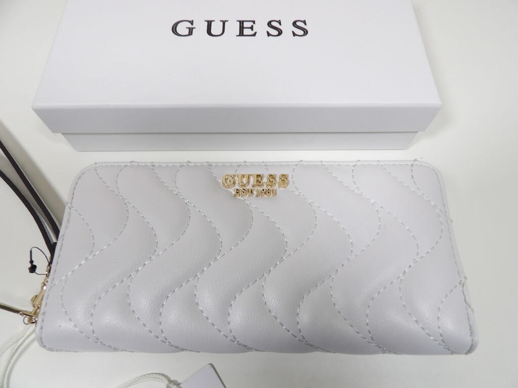 - GUESS: Maxi porte-feuille en simili cuir blanc matelassé - Dimensions: 20.5 x 10 cm