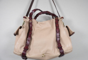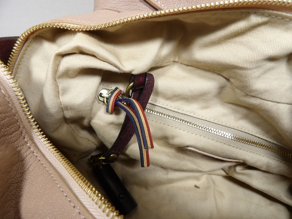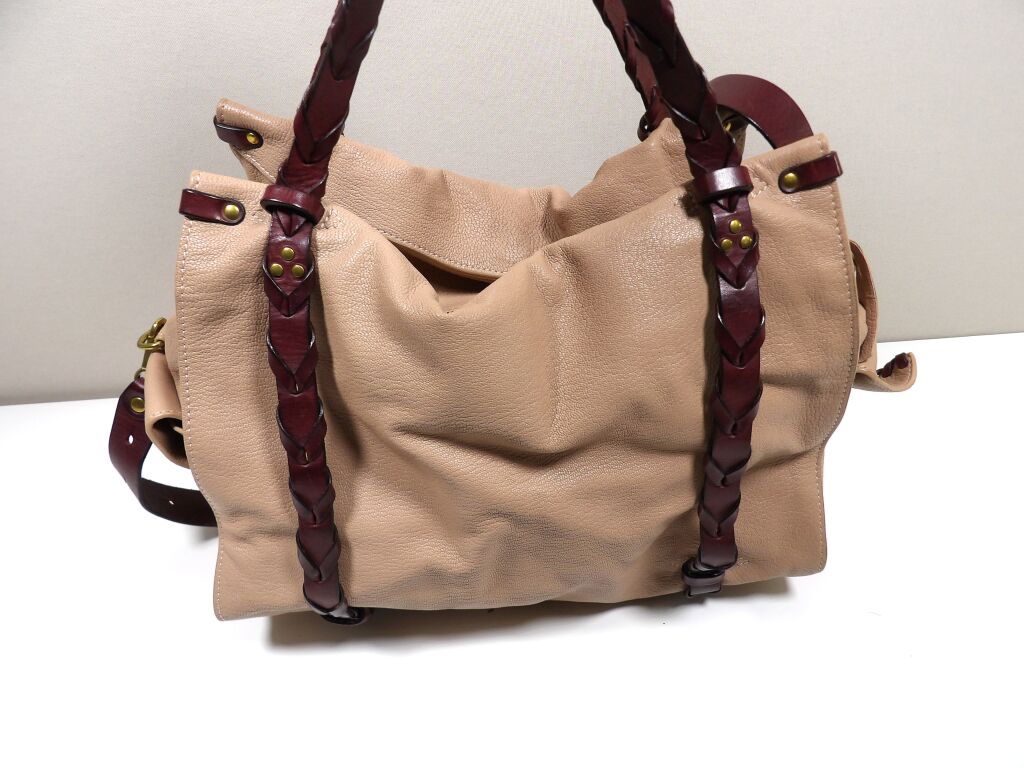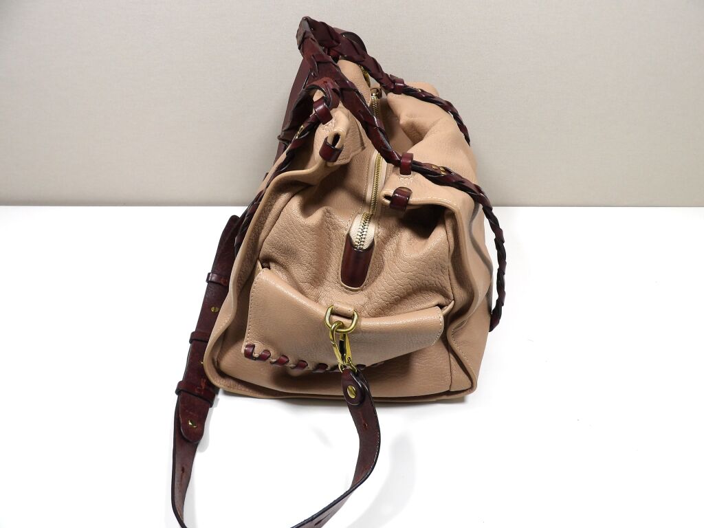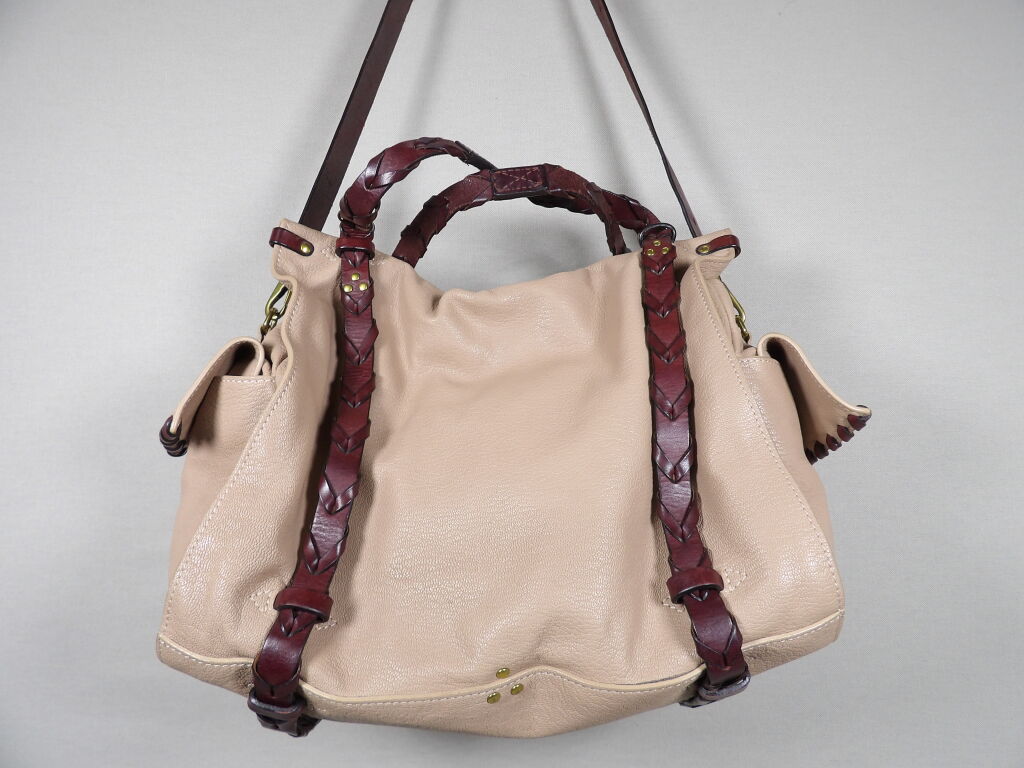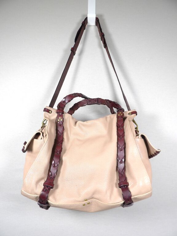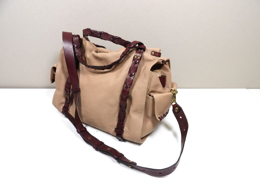 - Anses en cuir tressé, bandoulière amovible et de poches sur les côtés.