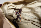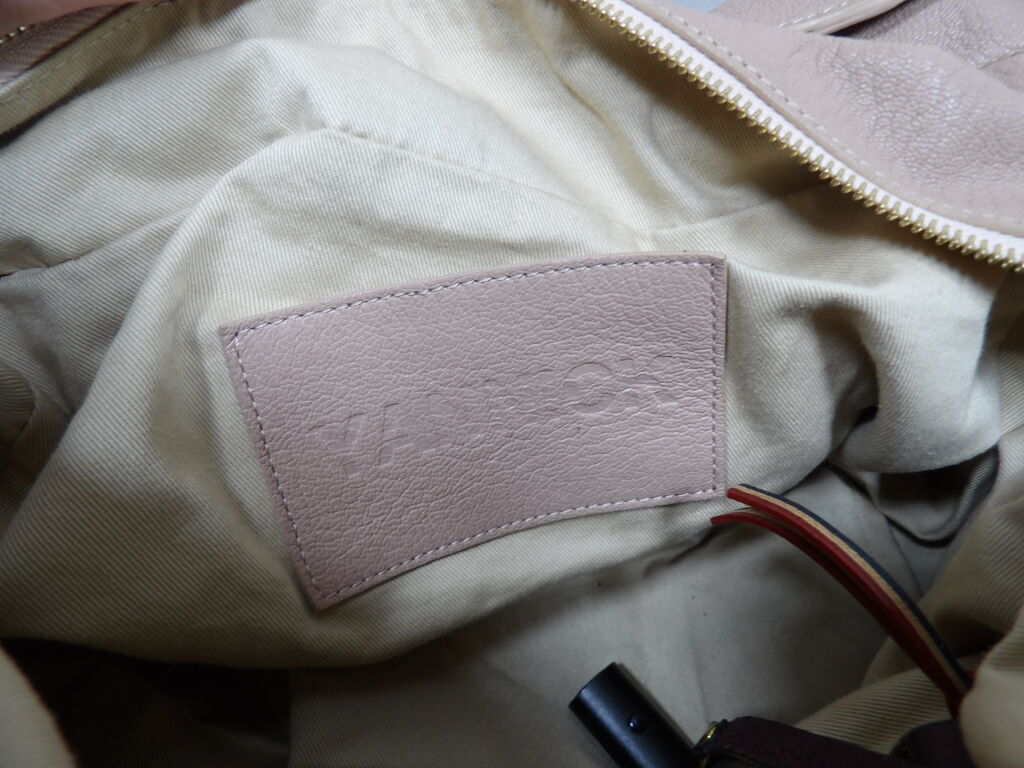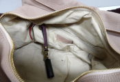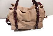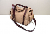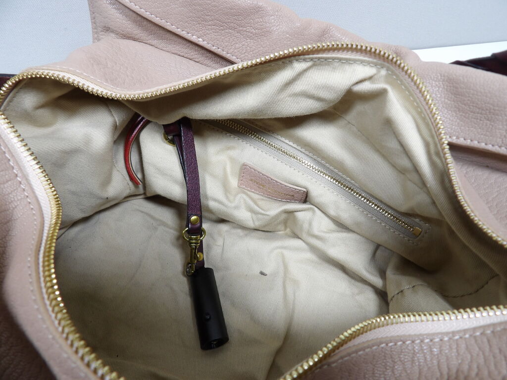 JEROME DREYFUS - Sac Bowling modèle Yannick en cuir grainé vieux rose et bordeaux - Occasion en très bon état