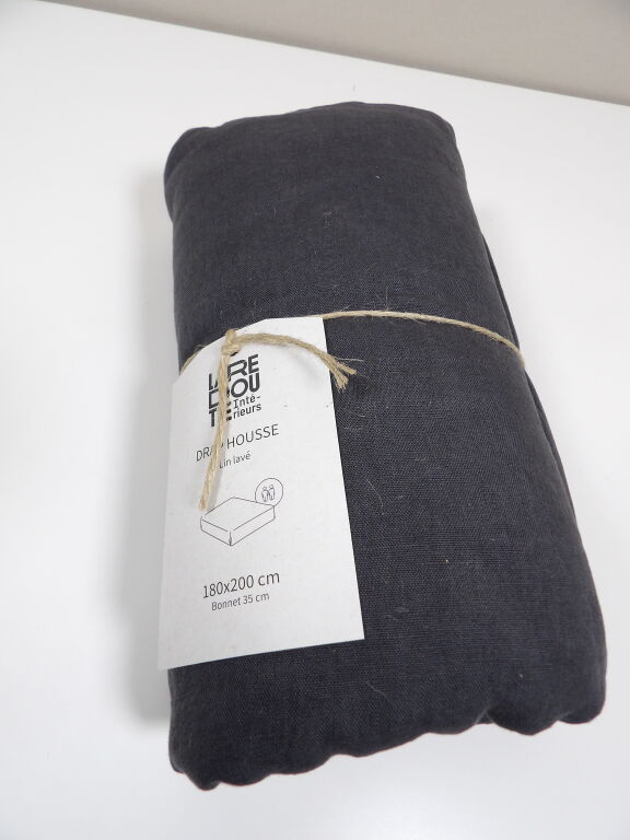 - Drap housse en lin lavé coloris Carbon - 180 x 200 cm