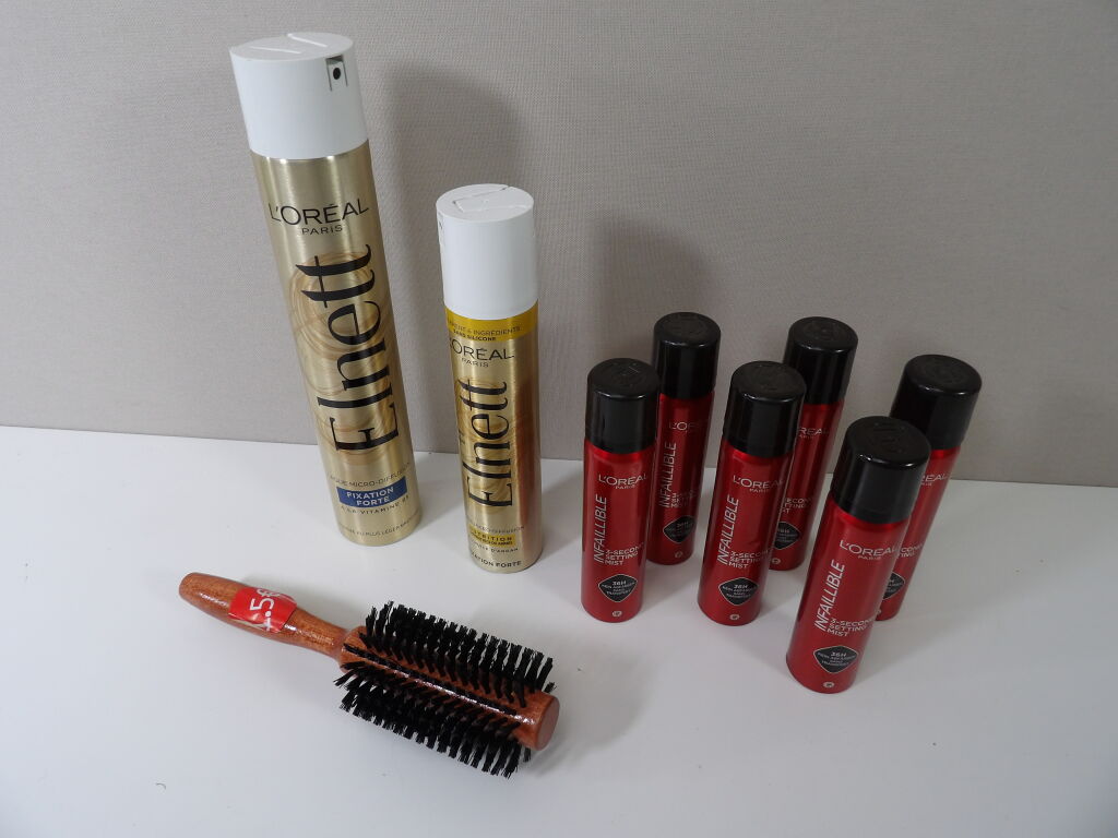 L'ORÉAL : x2 Laques (Fixation forte et Nutrition), ainsi que x6 spray fixateur maquillage 75ML.