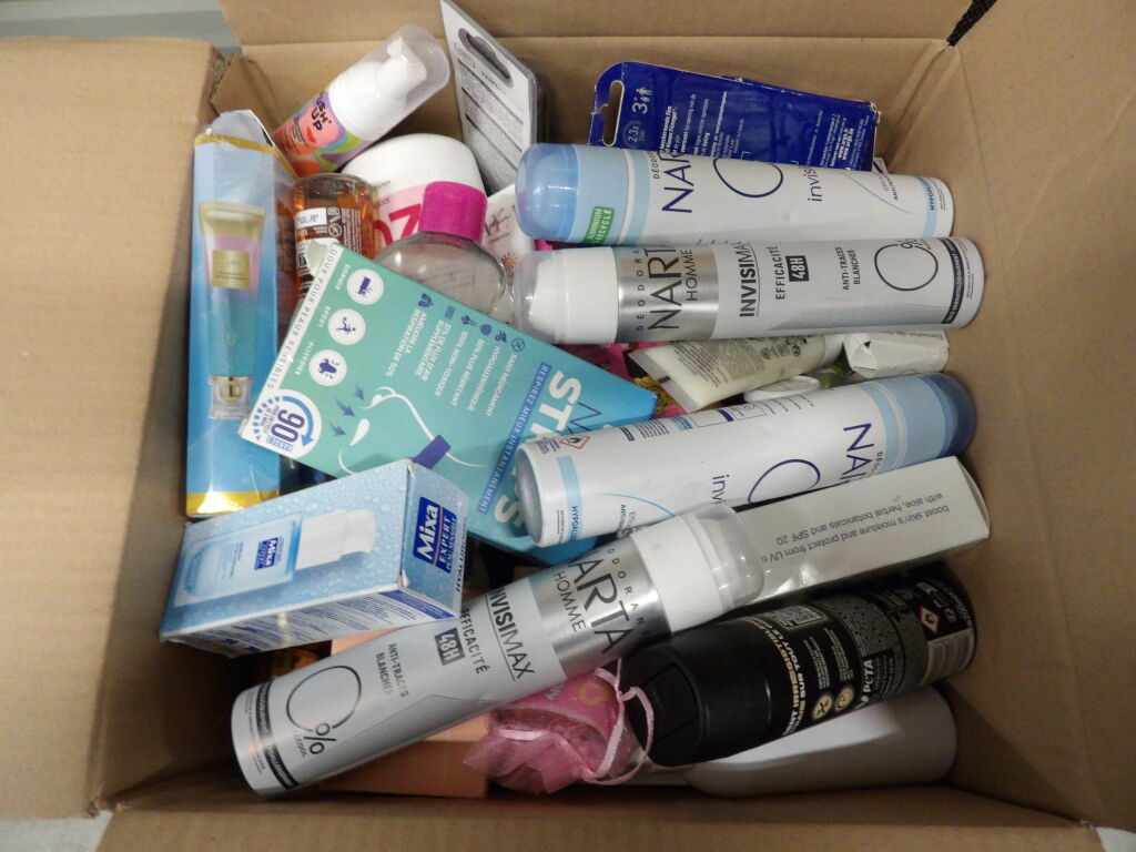 Lot COSMETIQUES en gros - divers, dans un carton 350x350, neuf et occasion.