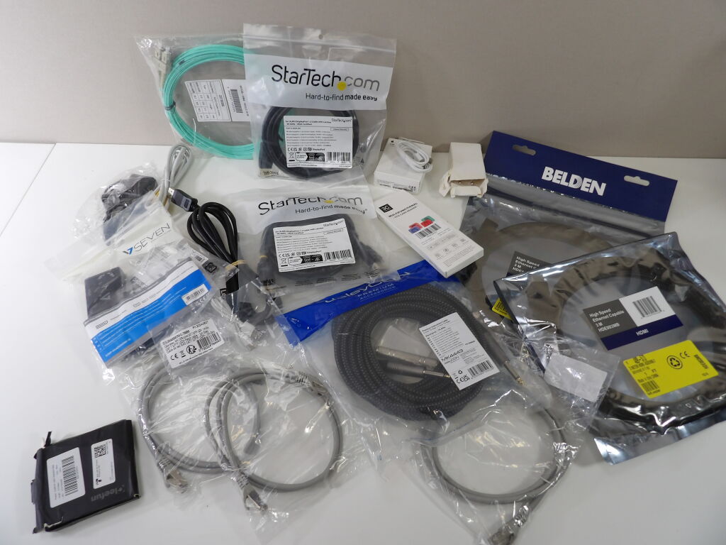 Lot de 14 cables divers : HDMI, de fibre, ethernet ....