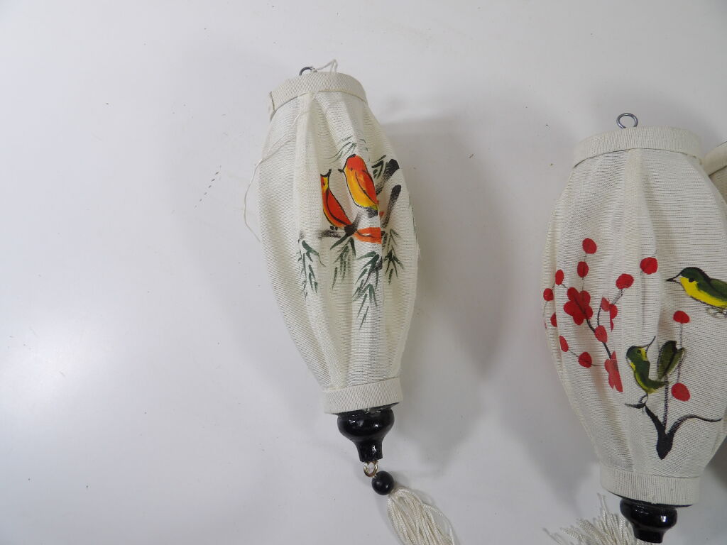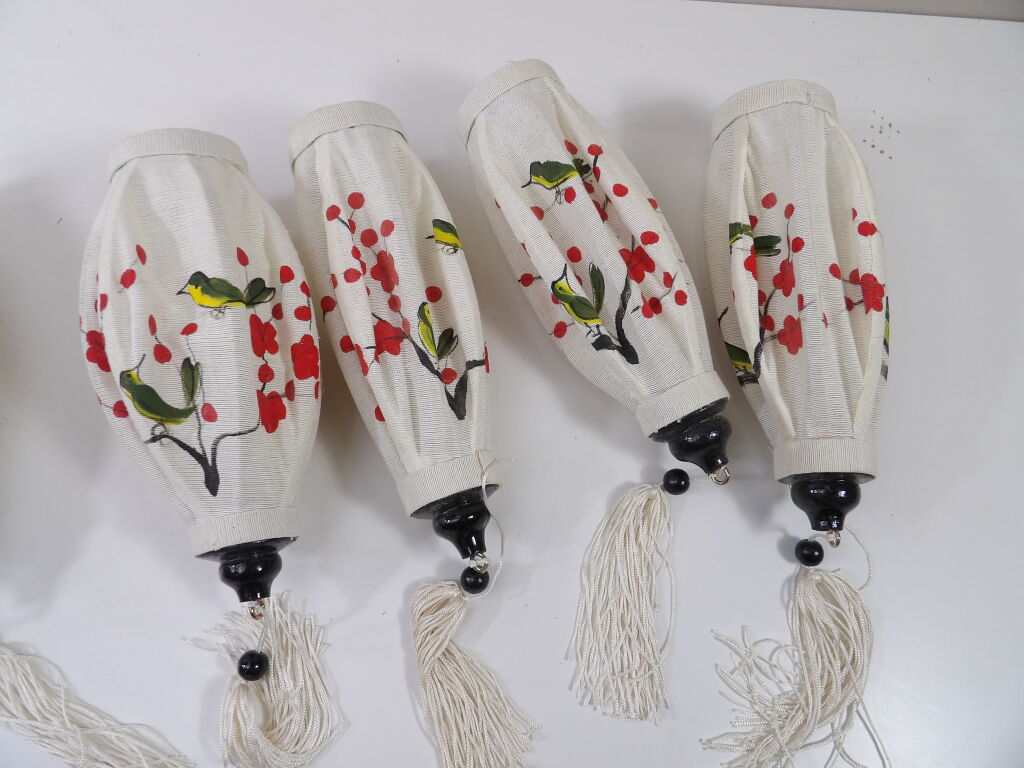 Lot de 5 Lampions Asiatique en Tissu de Lin Blanc - Lanterne Peint à la Main - 2 Modèles Occasion