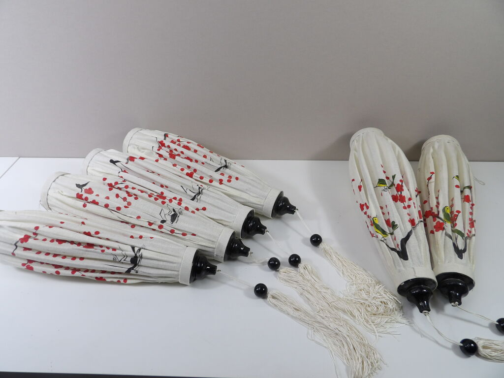 Lot de 6 Lampions Asiatique en Tissu de Lin Blanc - Lanterne Peint à la Main - 2 Modèles Occasion
