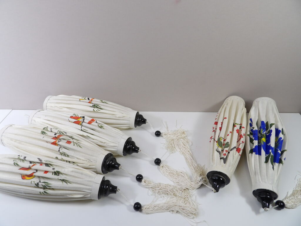 Lot de 6 Lampions Asiatique en Tissu de Lin Blanc - Lanterne Peint à la Main - 3 Modèles Occasion