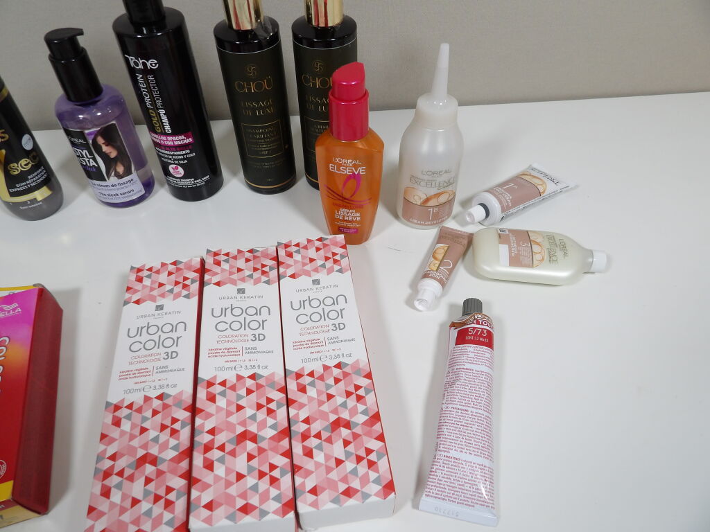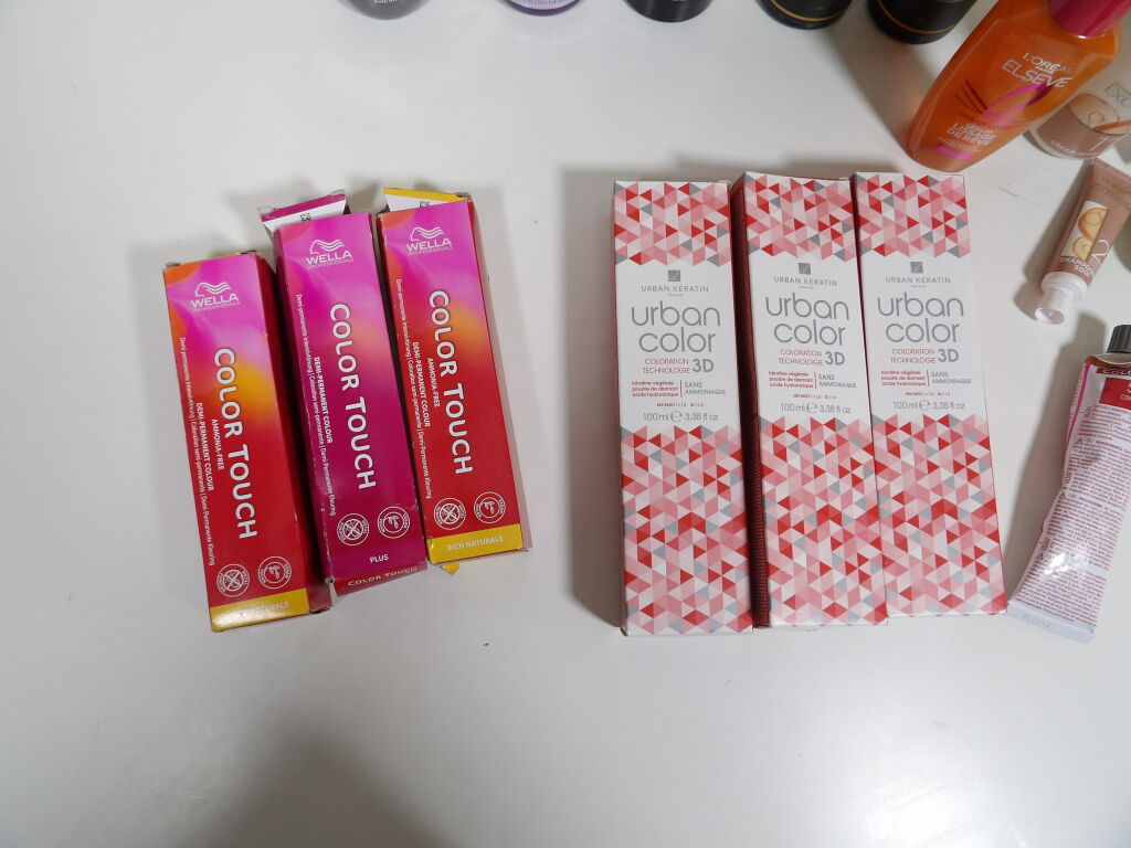 Lot de COSMETIQUE SOIN CHEVEUX ET COLORATION 14x articles neufs et occasion: 8 colorations - 6 soins