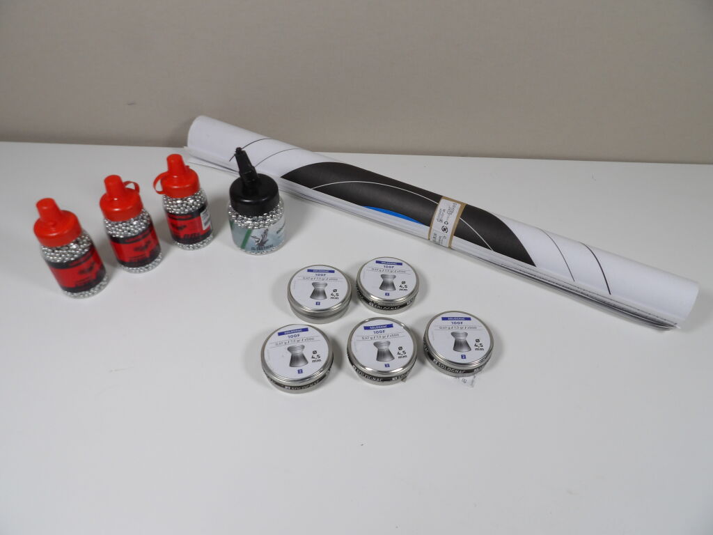 LOT DE SPORT armurerie : Cible X5 en papier 60/60 cm - 3 x plombs billes cal 4.5mm bouteille UMAREX 1500 pcs