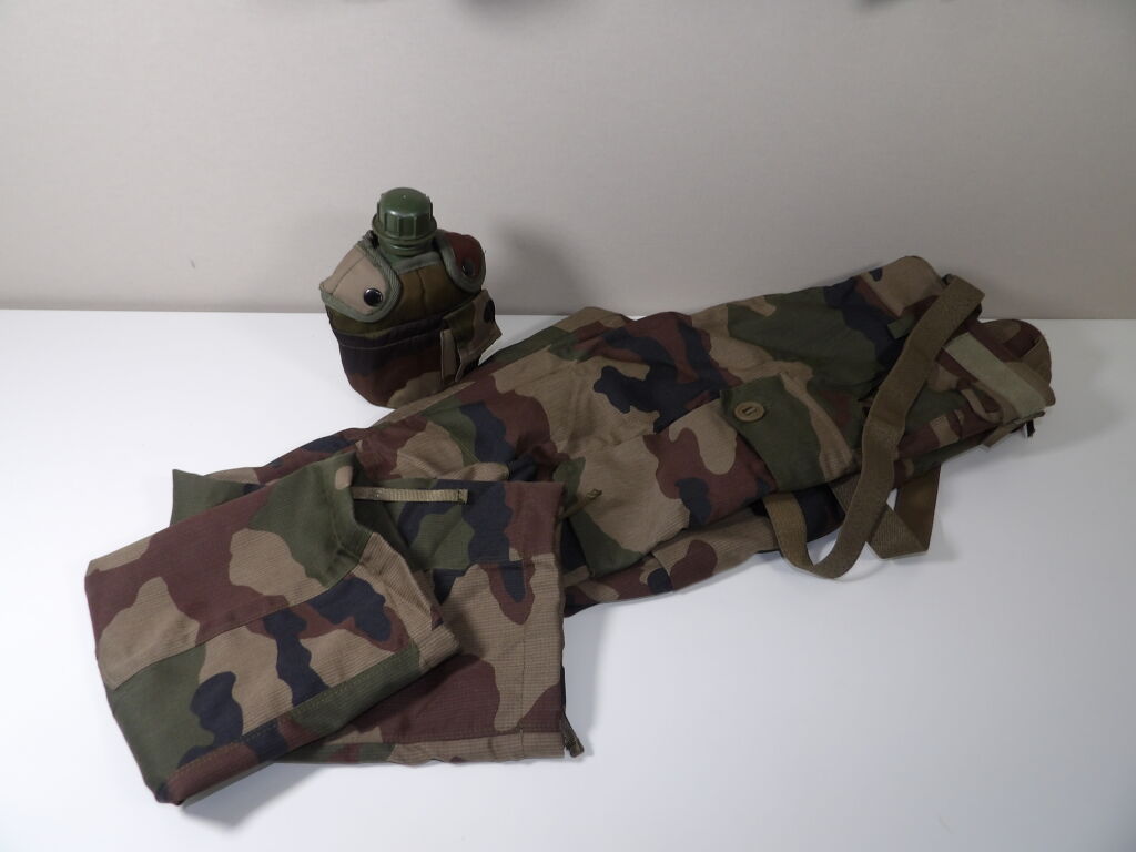 Lot de vêtement militaire 3 pcs Occasion dont du leo minor : Chemise Taille M - Pantalon Taille L - Gourde