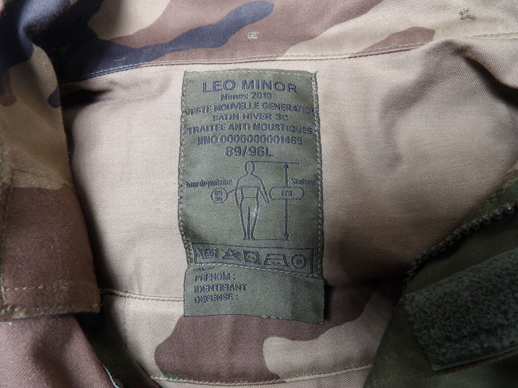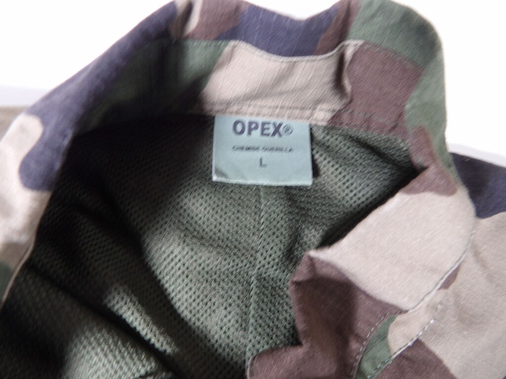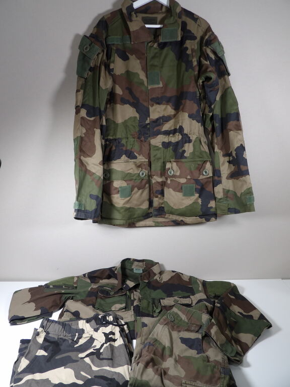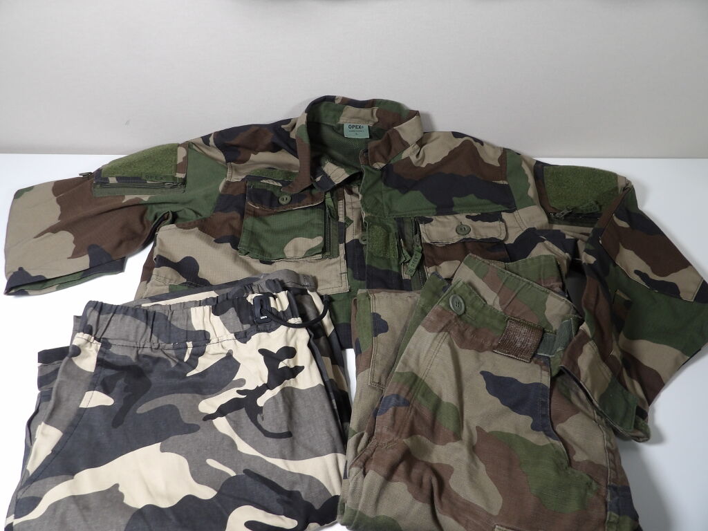 Lot de vêtement militaire 4 pcs dont leo minor et du opex Occasion : Veste Taille L - Chemise Taille L - Short Taille 4xl Pantalon Taille L