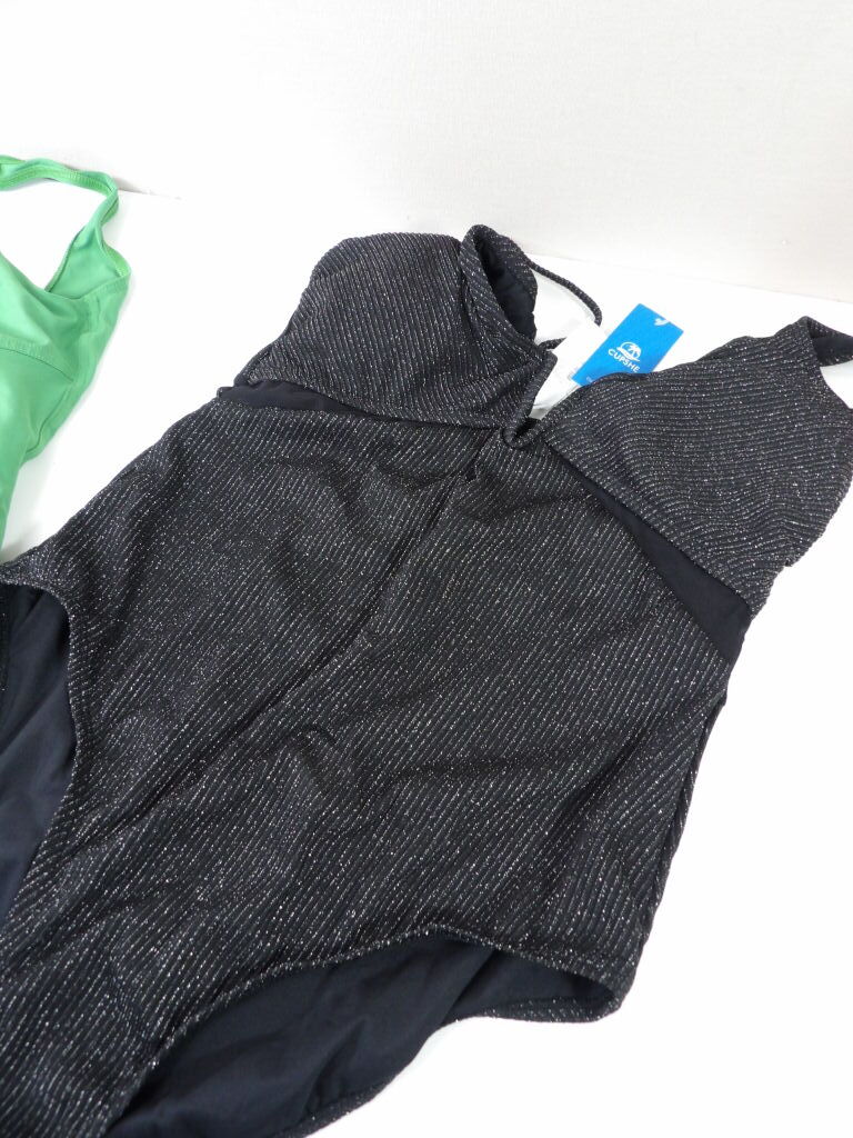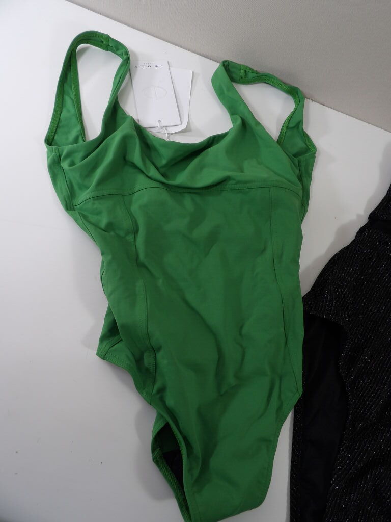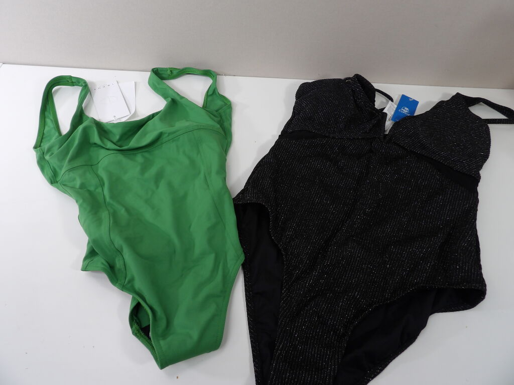 Lot de x2 Maillots de bain 1 pièce NEUFS en taille L : IODUS Paris 1 pièce nageur ventre plat essentiels T40 vert et CUPSHE 1 pièce noir brillant (Ils sont neufs avec étiquettes).