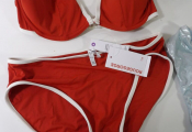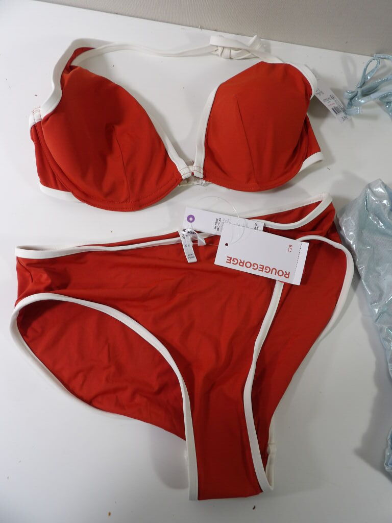 Lot de x2 Maillots de bain 2 pièces NEUFS en taille M / 38 : CALZEDONIA x2 culottes Bleu lurex et ROUGE GORGE x1 ensemble en rouge.