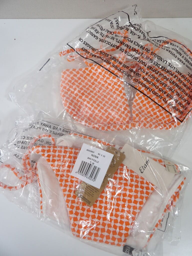 Lot de x2 Maillots de bain 2 pièces NEUFS en taille S / 36 : CALZEDONIA Marron et ETAM en orange. (Ils sont neufs avec étiquettes).