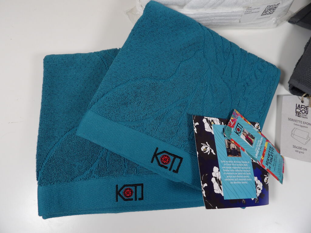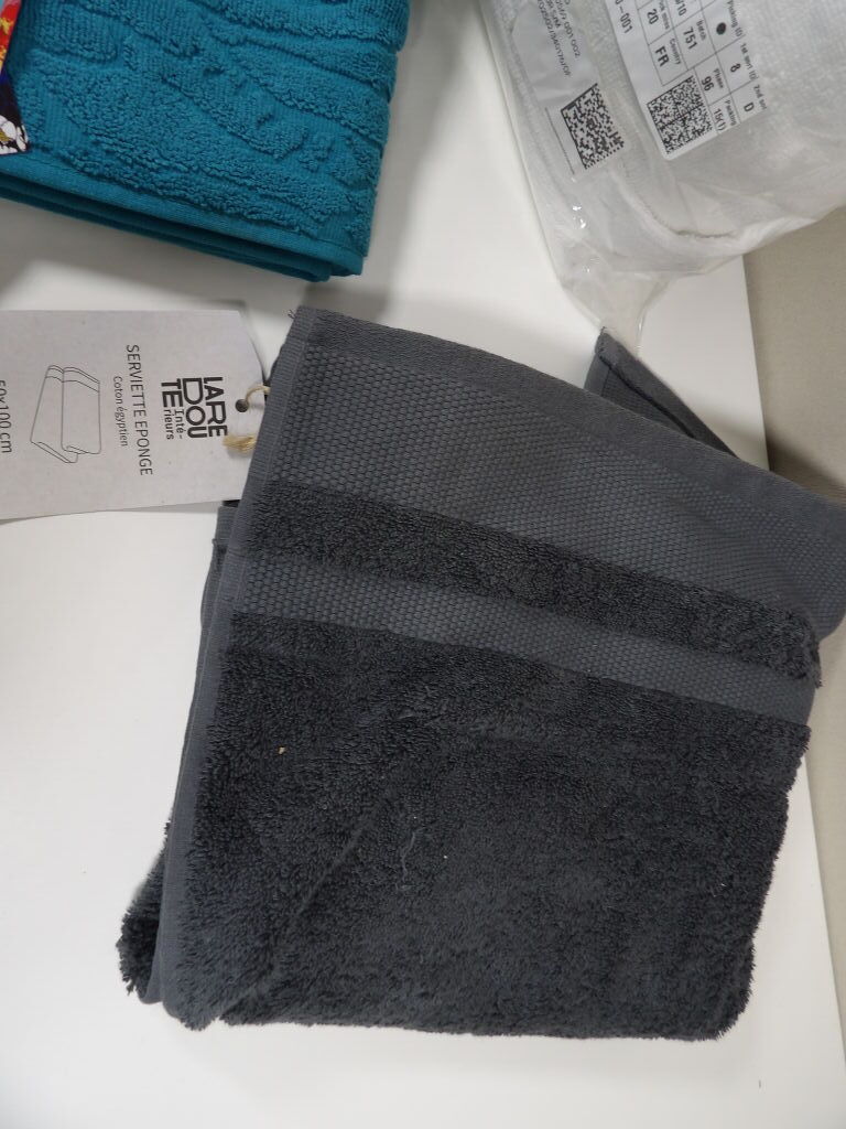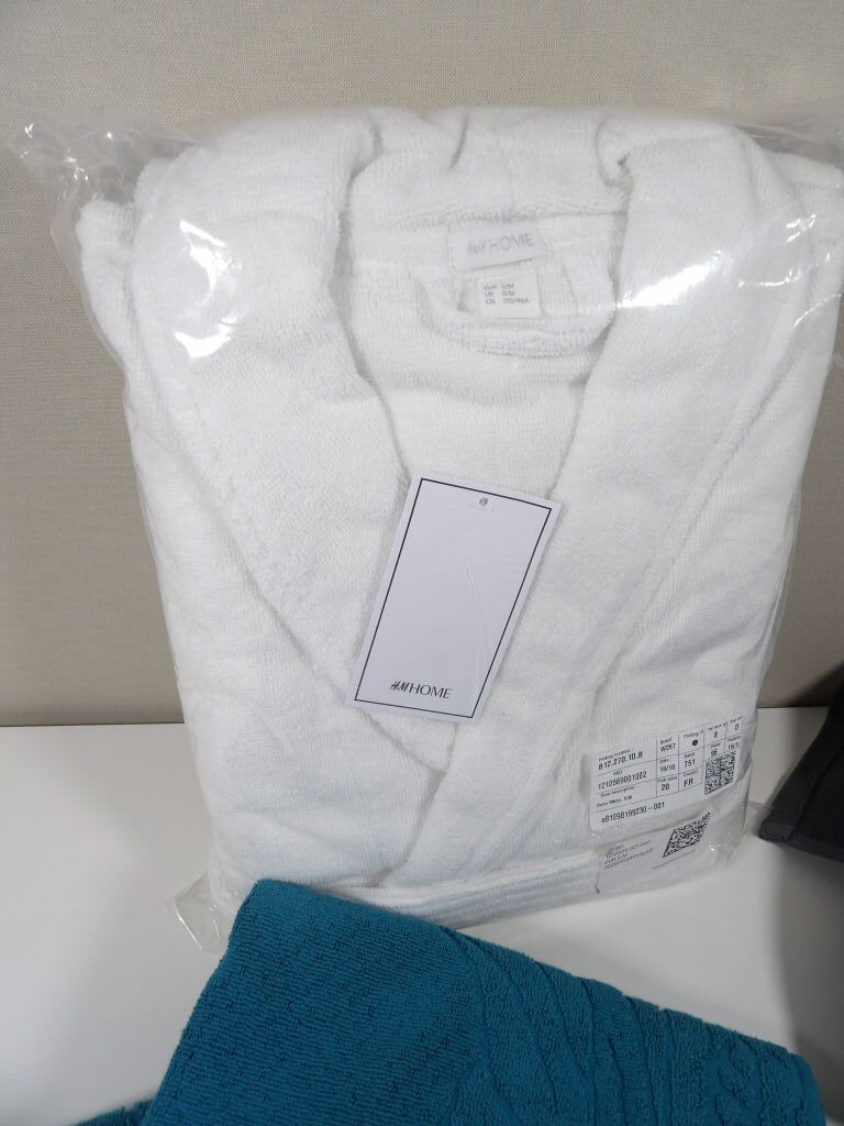 Lot de x4 articles de BAIN : Peignoir H&M Home, La Redoute 50x100CM coton égyptien gris foncé, et x2 serviettes de toilette 50x100CM.
