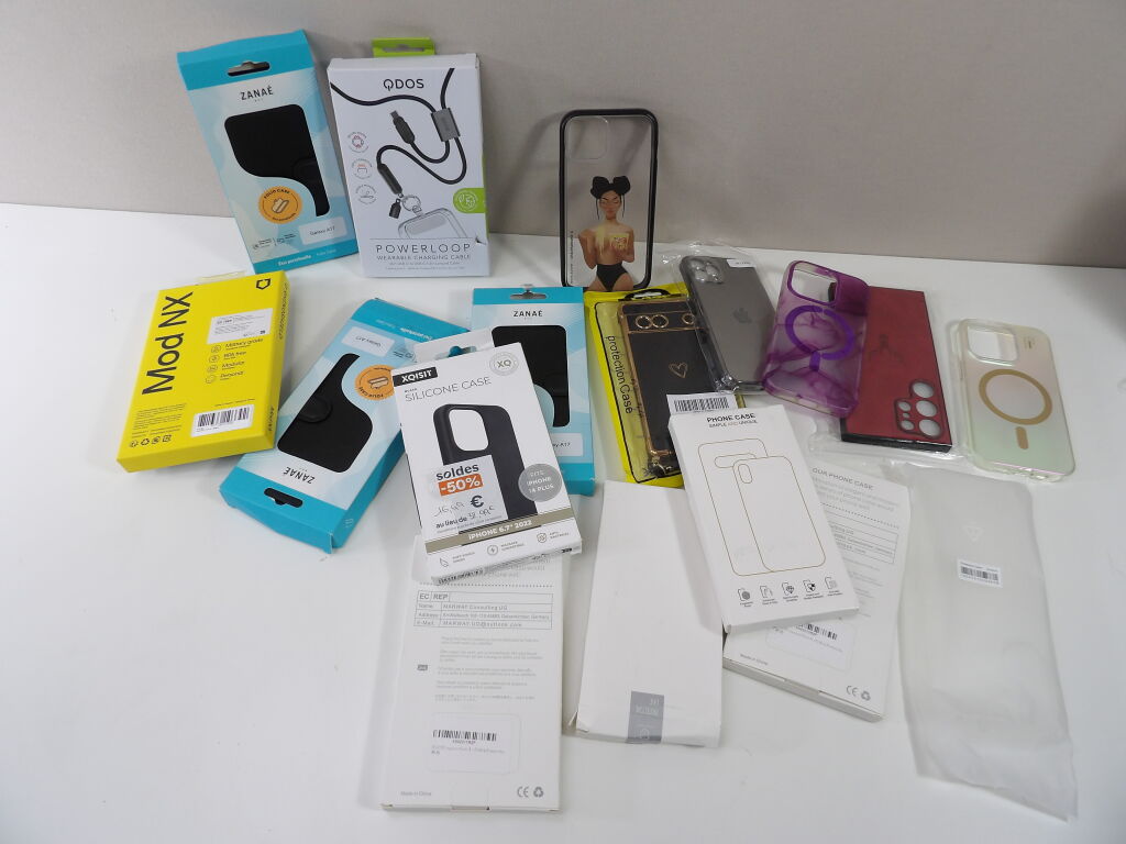 Lot d'une quinzaine d'accessoires divers pour téléphone, principalement neufs: coques, protection, pour réparation...
