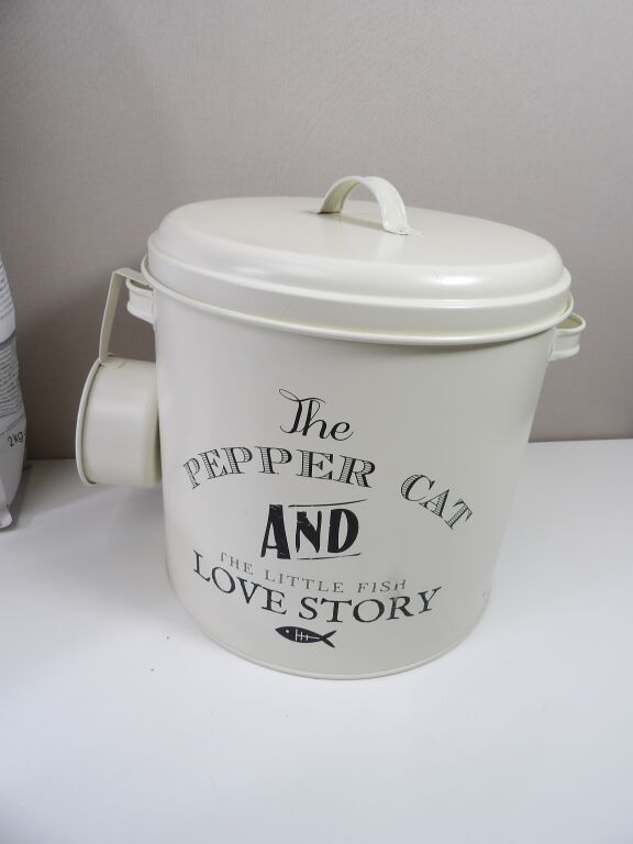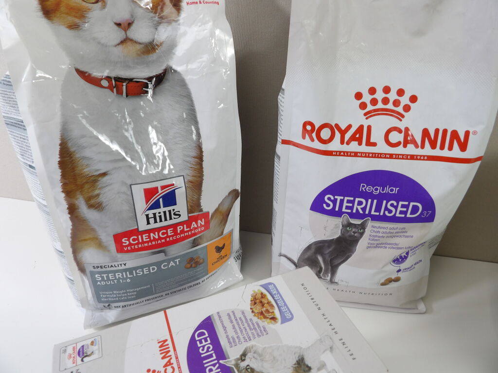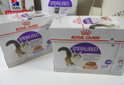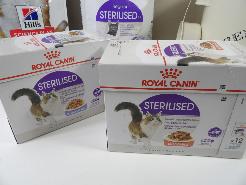 Lot ROYAL CANIN pour CHATS STÉRÉLISÉS (DLC 2027) : 1 sachet de croquettes 2kgs + 2 Packs de 12x85gr d'émincés en sauce ou en gelée. On y joint une belle boite en métal MAISONS DU MONDE avec une pelle.