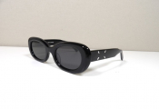 Monture de forme ovale en acétate. Les branches sont ornées des Four Stitches emblématiques de la Maison.