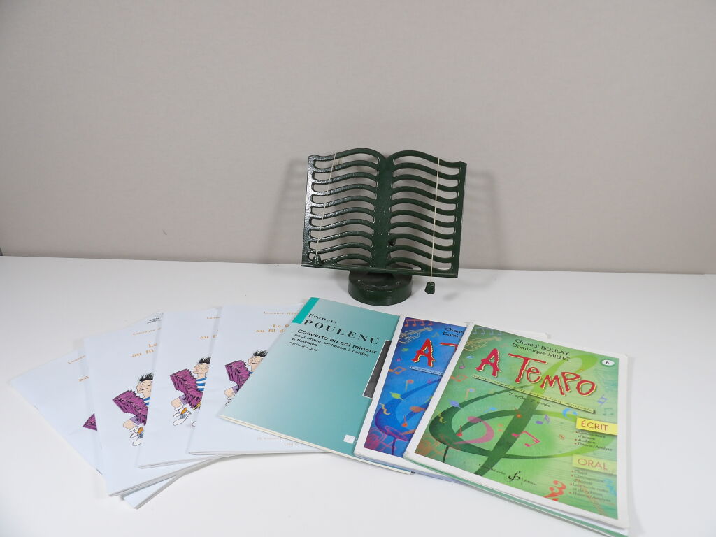 MUSIQUE - Lot de 7 partitions et pupitre en métal