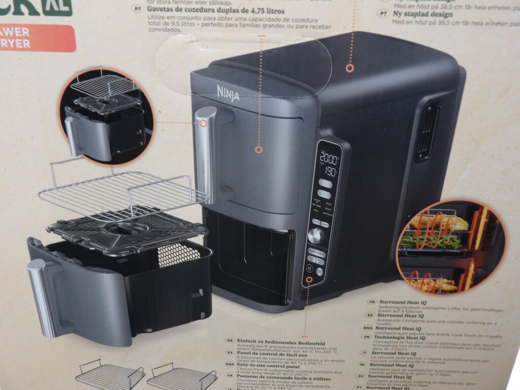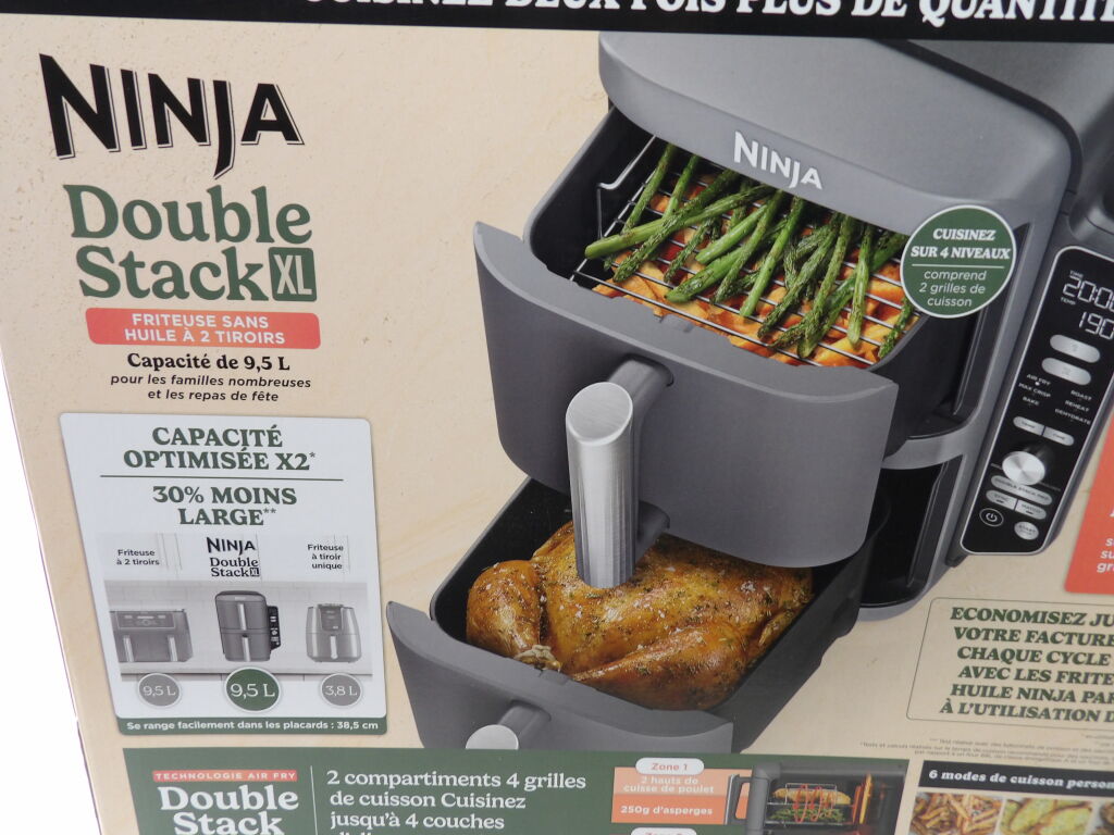 NINJA - Air Fryer NEUF ! (Boite scellée) - Double Stack XL 2 tiroirs superposés 6-en-1 avec 6 programmes : cuire, à croustillant ou rôtir en passant par réchauffer et autres. Capacité de 9,5 L !