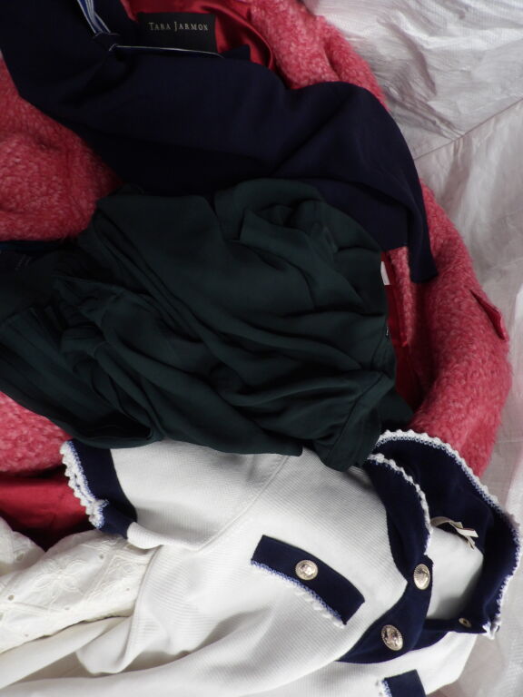 Palette de 200 pièces de vêtements d'occasion et certains neufs : Femme, Enfant, Homme ( divers gammes et marques dont Tara Jarmon, Maje, The Kooples...) - ATTENTION ce lot est d'occasion tous états et contient divers gammes donc de l'entrée type KIABI aussi. il n'est pas composé uniquement des marques citées.