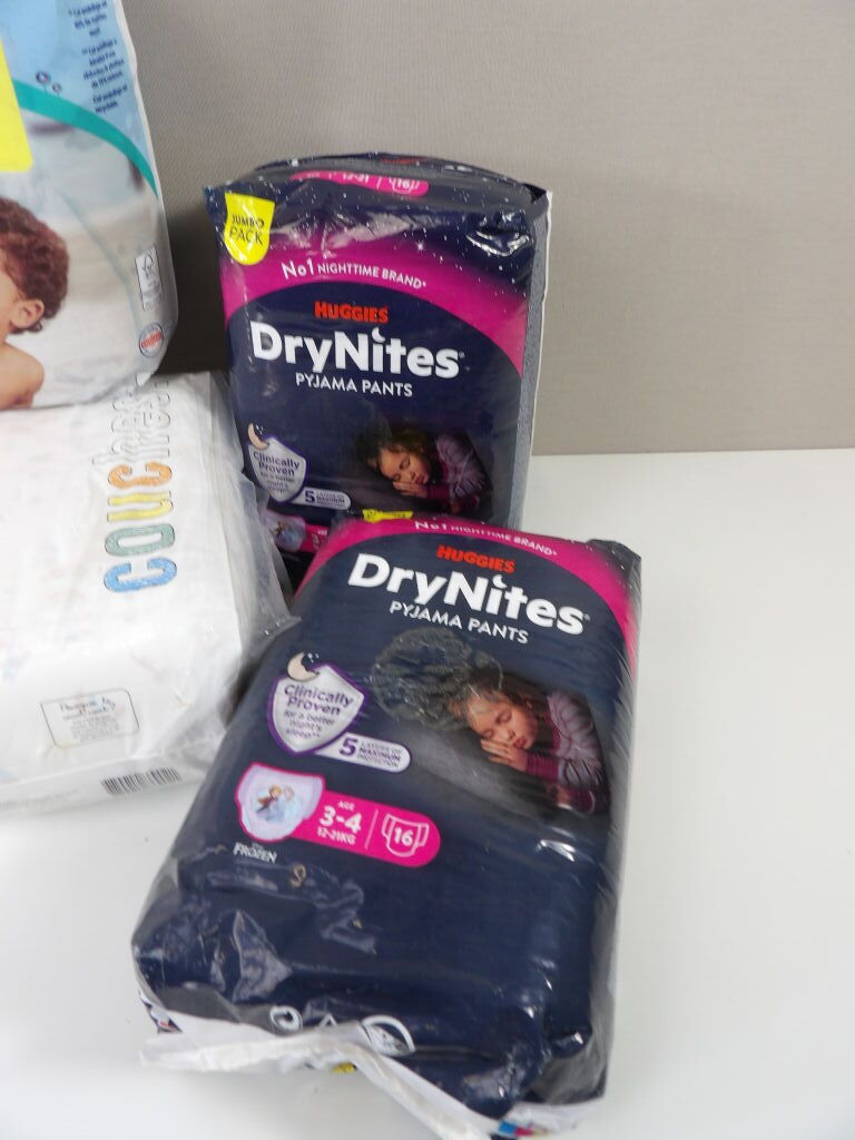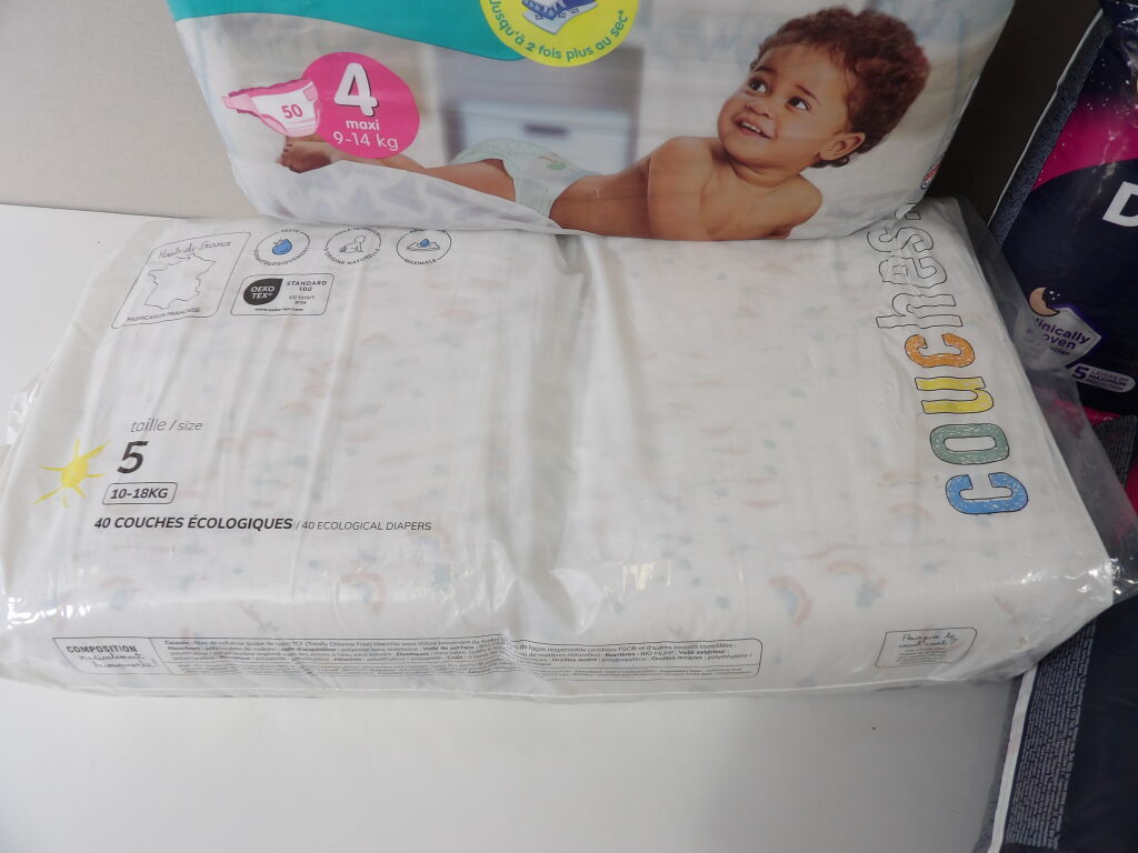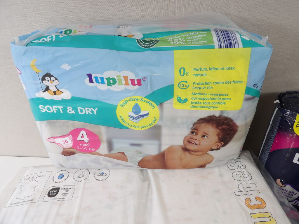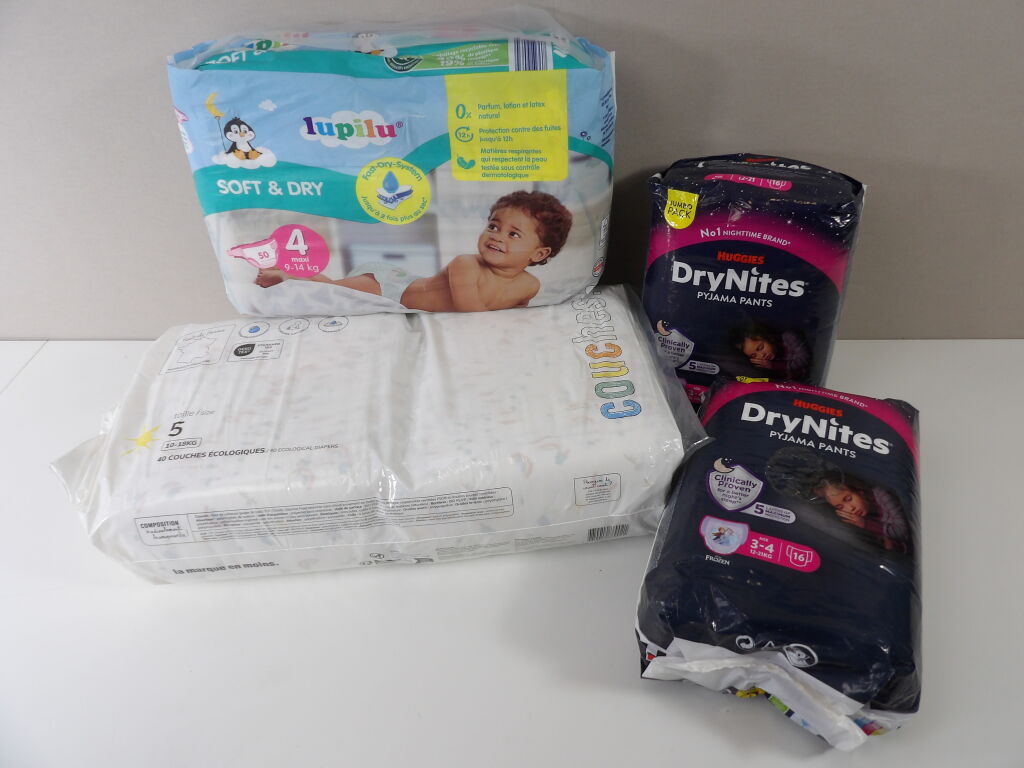 Puériculture : lot de couches taille 5 x40, Lupilu taille 4x50 et Huggies ( 3-4 ans) 2x16 motifs reine des neiges.