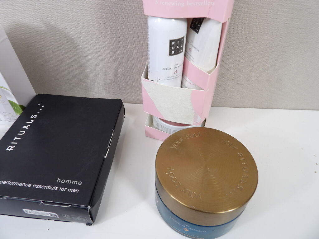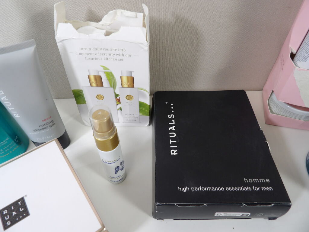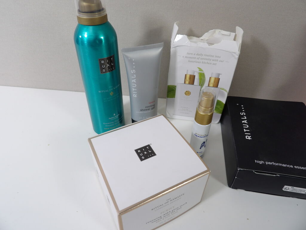 RITUALS : Lot de x7 articles (neuf et occasion) : Gommage pour le corps, sport cooling shower gel, masque éclat aux AHA, Duo gel lavant et baume pour les mains, mousse de douche ...