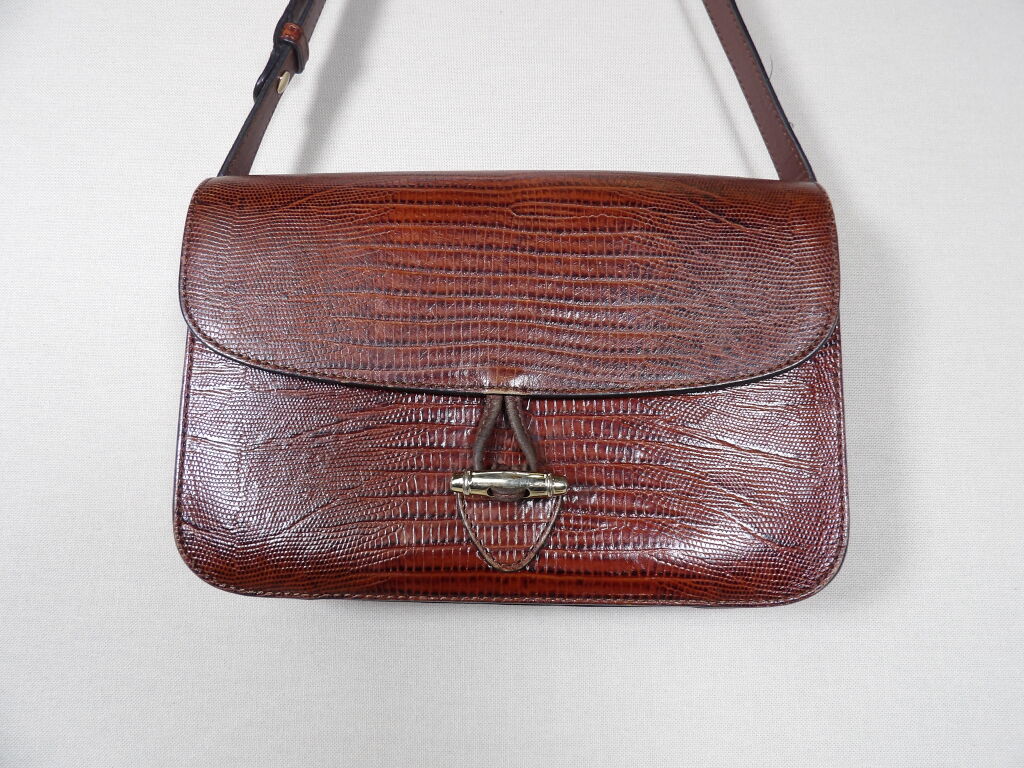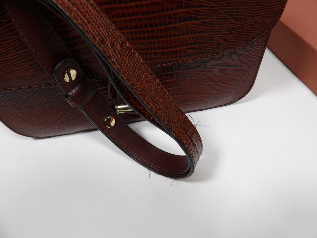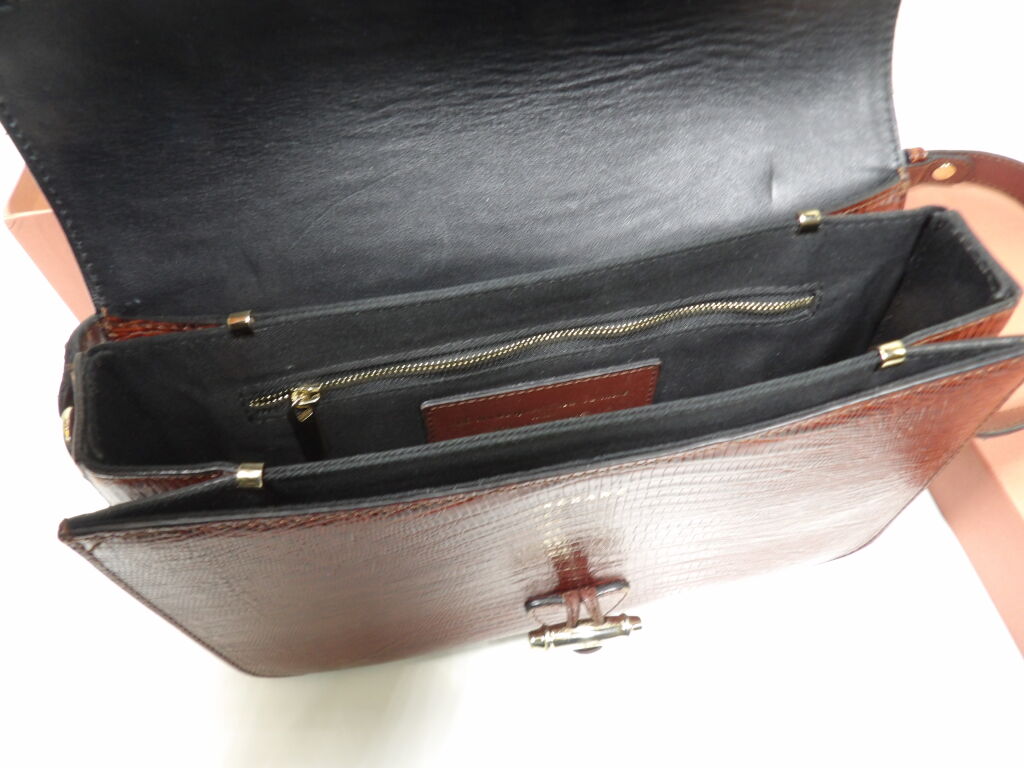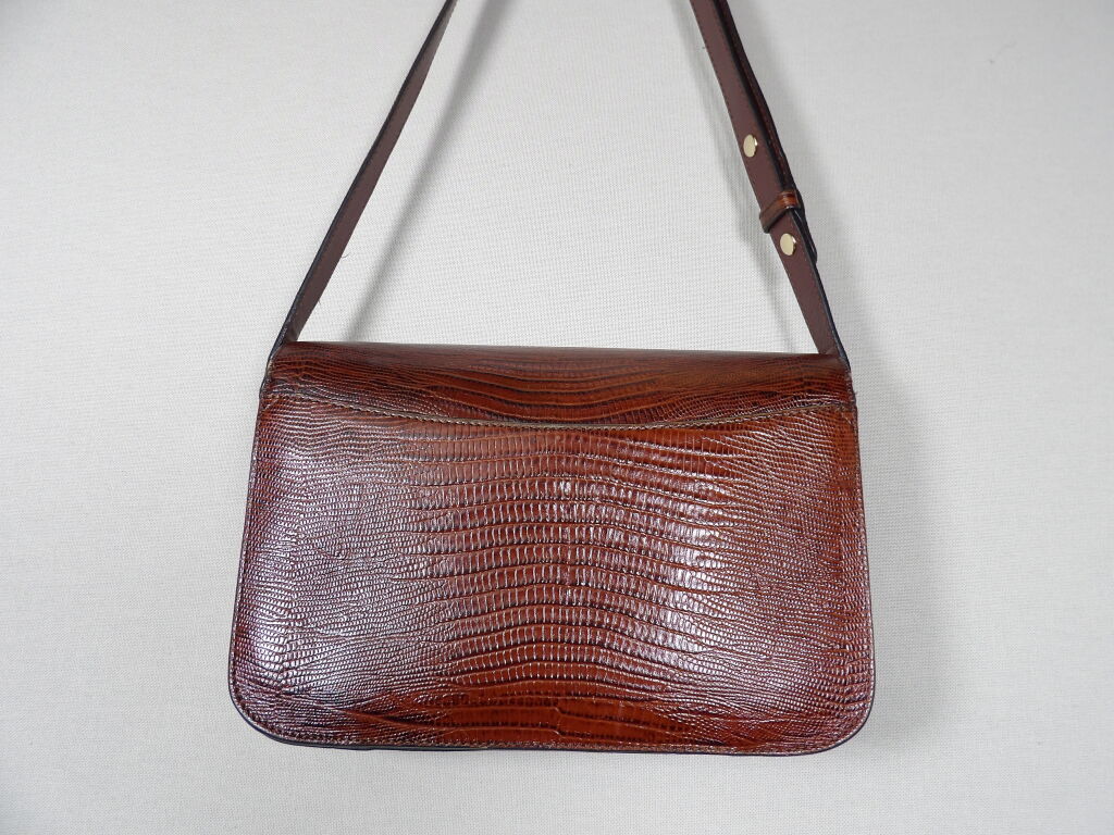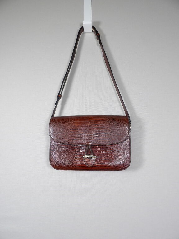 Sac rectangle à soufflets - Extérieur en cuir lisse embossé lézard