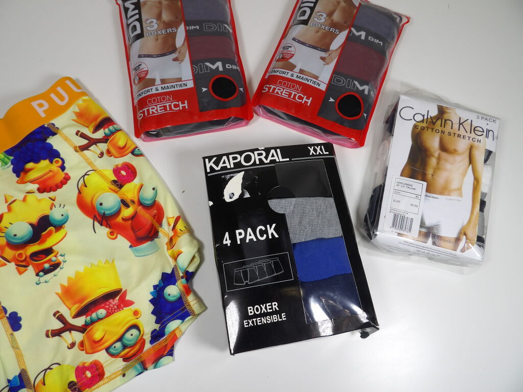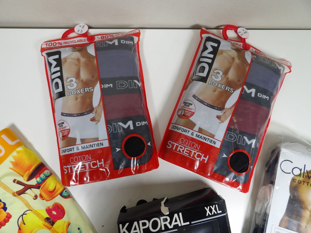 SOUS VETEMENT BOXER HOMME 14PCS : 4 KAPORAL XXL - 6 DIM XXL 3 CALVIN KLEIN 3XL - 1 PULL IN 3XL