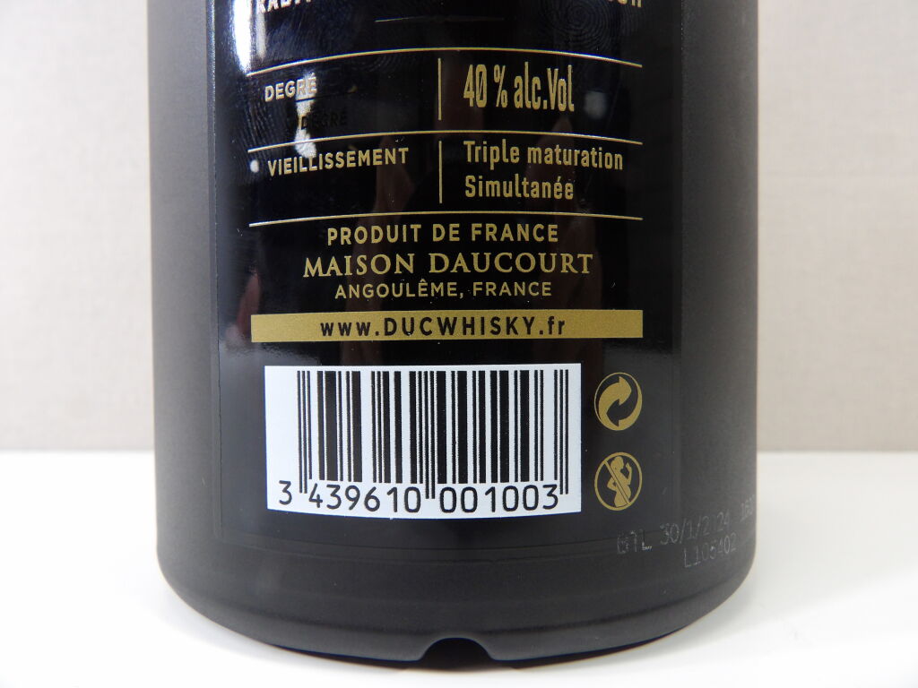 Spiritueux : 1 bouteille (70 cl) de D.U.C Whisky français (Maison Daucourt,Angoulème)