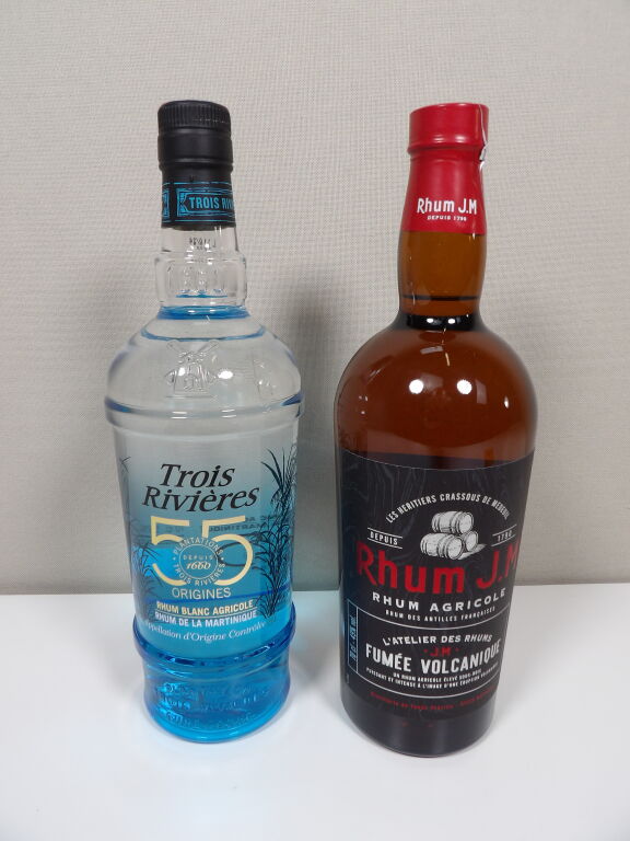 Spiritueux : 2 bouteilles de rhum agricole (70 cl) Trois Rivières 55 et l'Atelier du Rhum J.M Fumée Volcanique