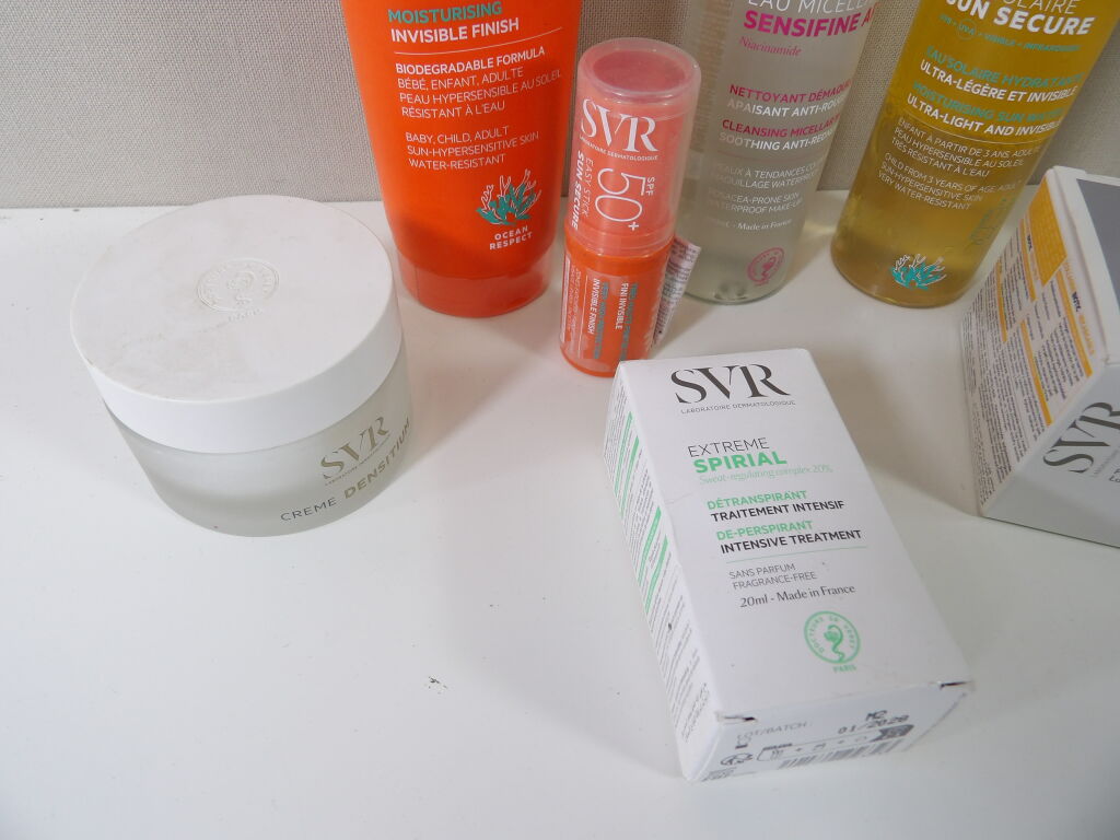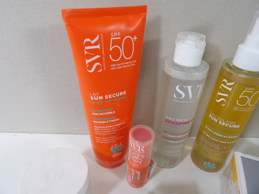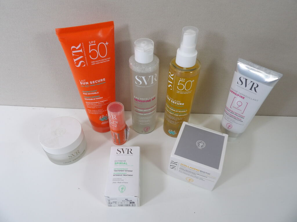 SVR : Lot de x8 articles (neuf et occasion) : Lait SUN, Eau micellaire, Eau solaire, crème rebondissante raffermissante, baume démaquillant...