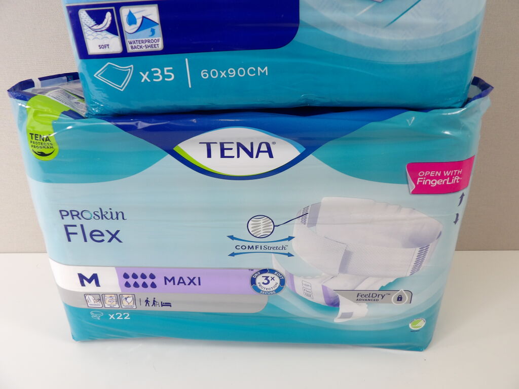 Tena : couches anti-fuites taille M x 22 et 35 alèses 60x90 cm.