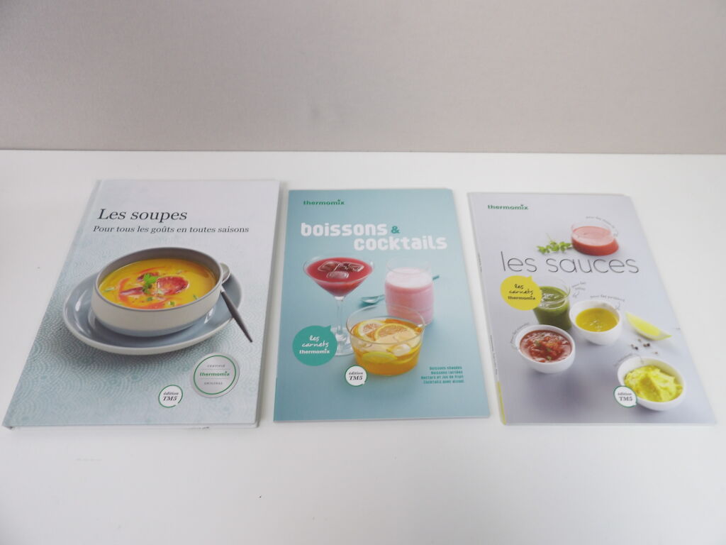- 3x livres de recettes: Les sauces, Boissons & cocktails, les soupes