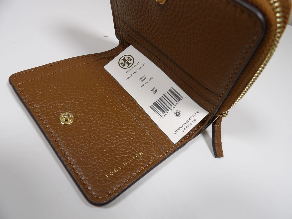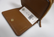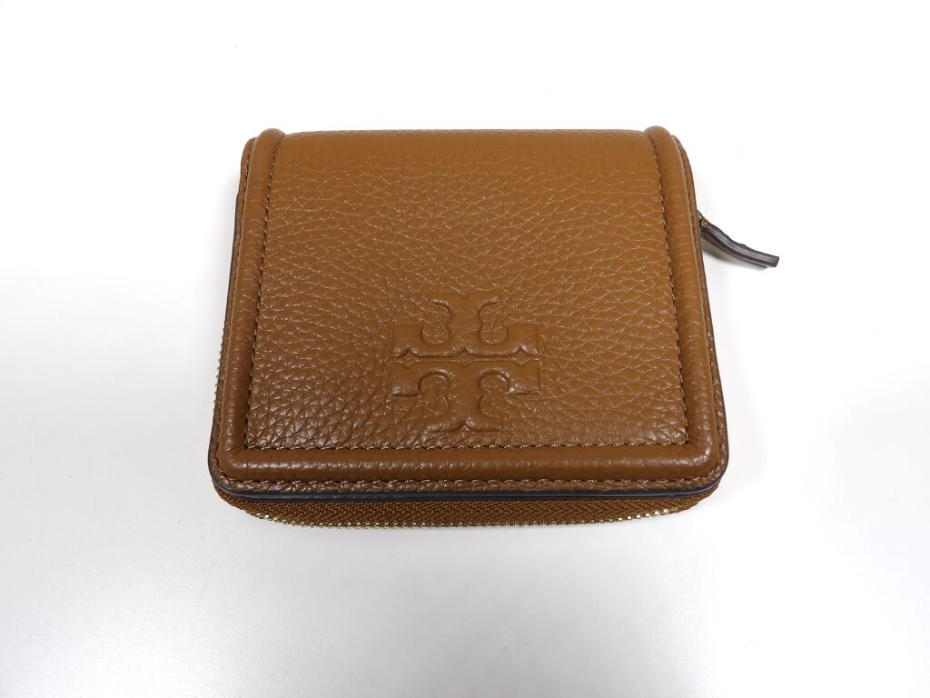 TORY BURCH - Porte-monnaie / Porte-cartes - en cuir grainé marron Occasion comme neuf (une trace de stylo visible sur les photos)
