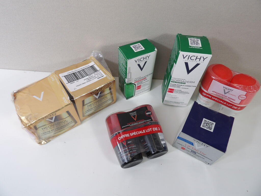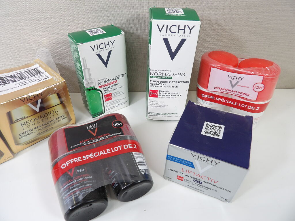 VICHY : Lot de x7 articles (neuf et occasion) : Déodorants, revolumizing cream, Lifactiv, Acne prone skin et serum anti imperfections.
