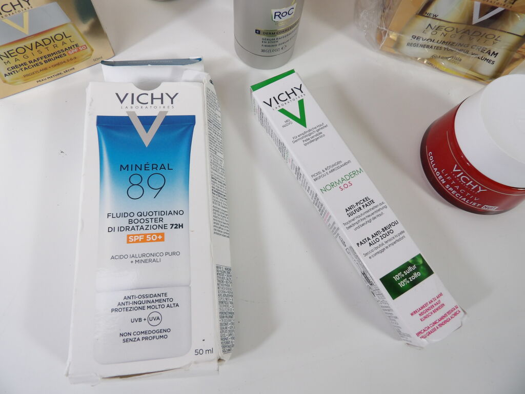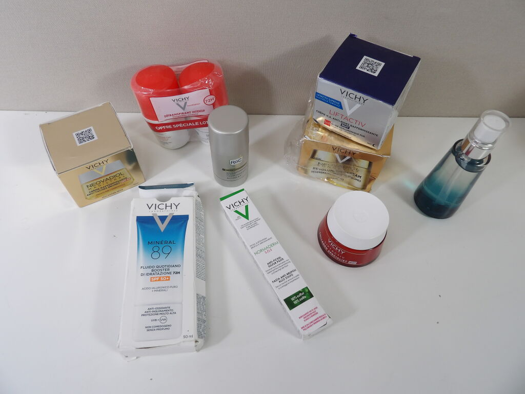VICHY : Lot de x9 articles (neuf et occasion) : Booster quotidien, déodorants, sérum, pâte anti boutons, Liftactiv, crème anti rides, crème raffermissante anti taches brunes, anti pollution...