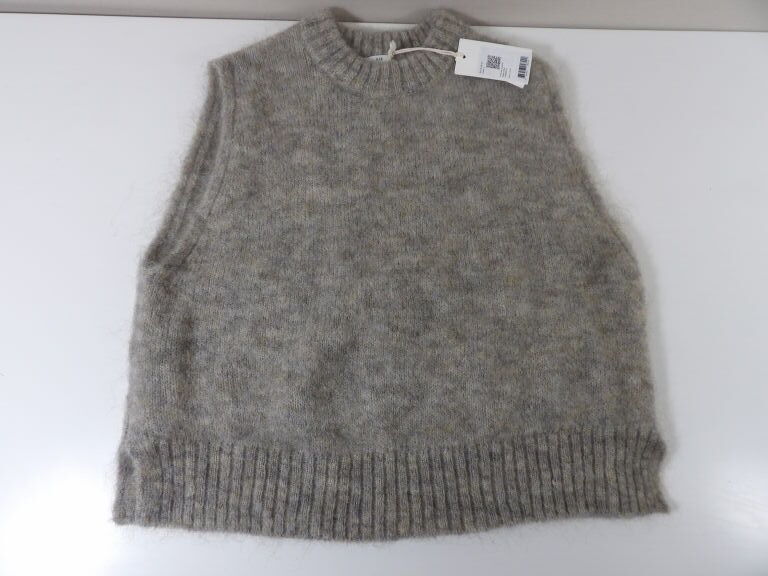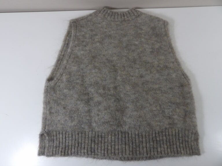 - Un pull sans manches de la marque Ysé, modèle "au coin du feu", beige chiné/gris. Taille S