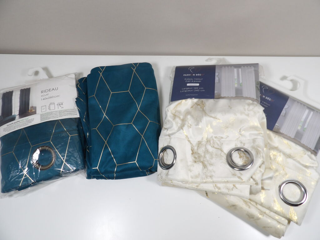 2 paires de rideaux effet velour 140 x 260 cm et 140 x 240 cm