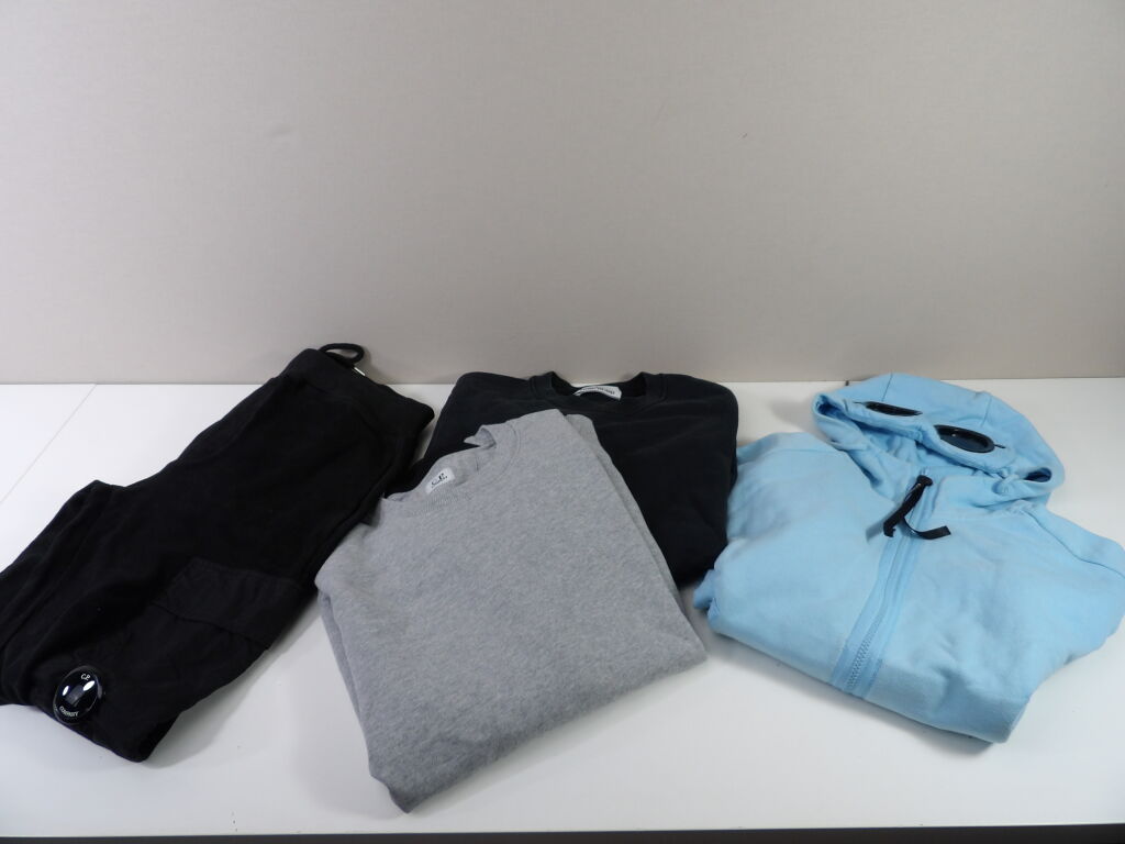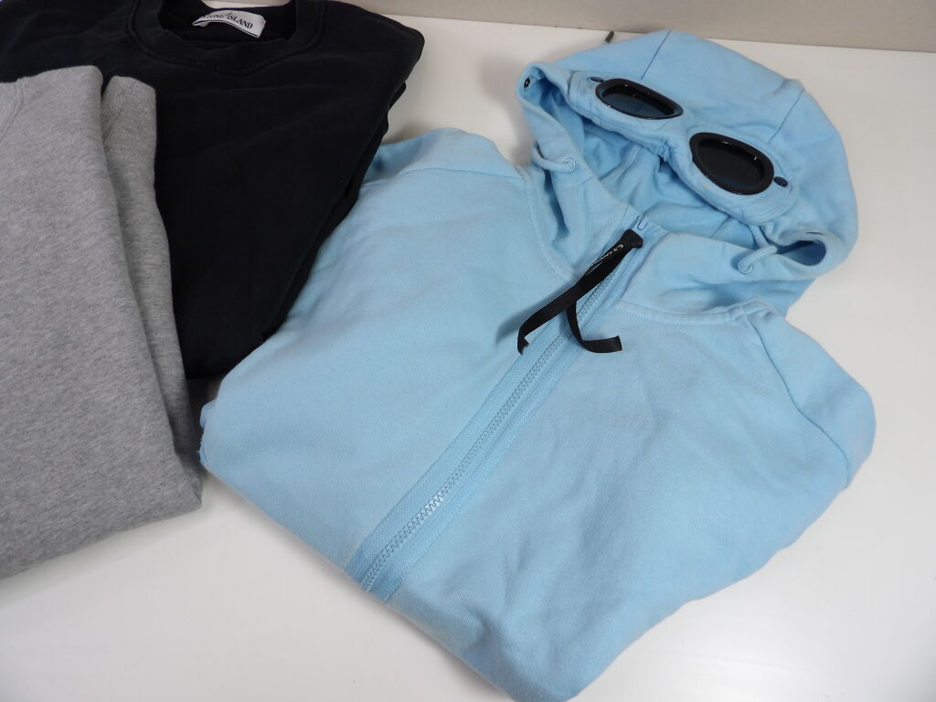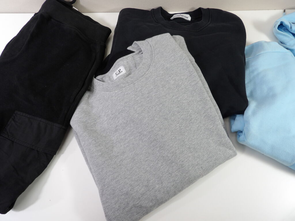 C.P. COMPANY et STONE ISLAND Lot de x4 articles d'occasion en taille S. (Attention le sweat bleu ciel a capuche est taché).
