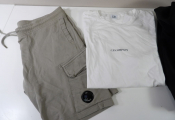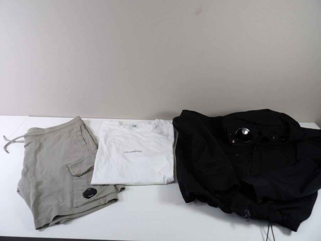 C.P. COMPANY Lot de x3 articles d'occasion en taille XL. Attention pour la veste noire en taille 52, la fermeture à glissière principale semble cassée et il manque un verre aux lunettes de la capuche.