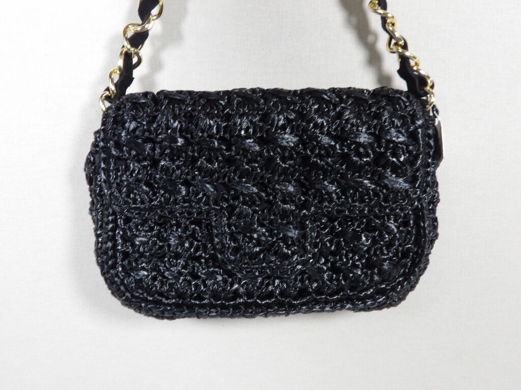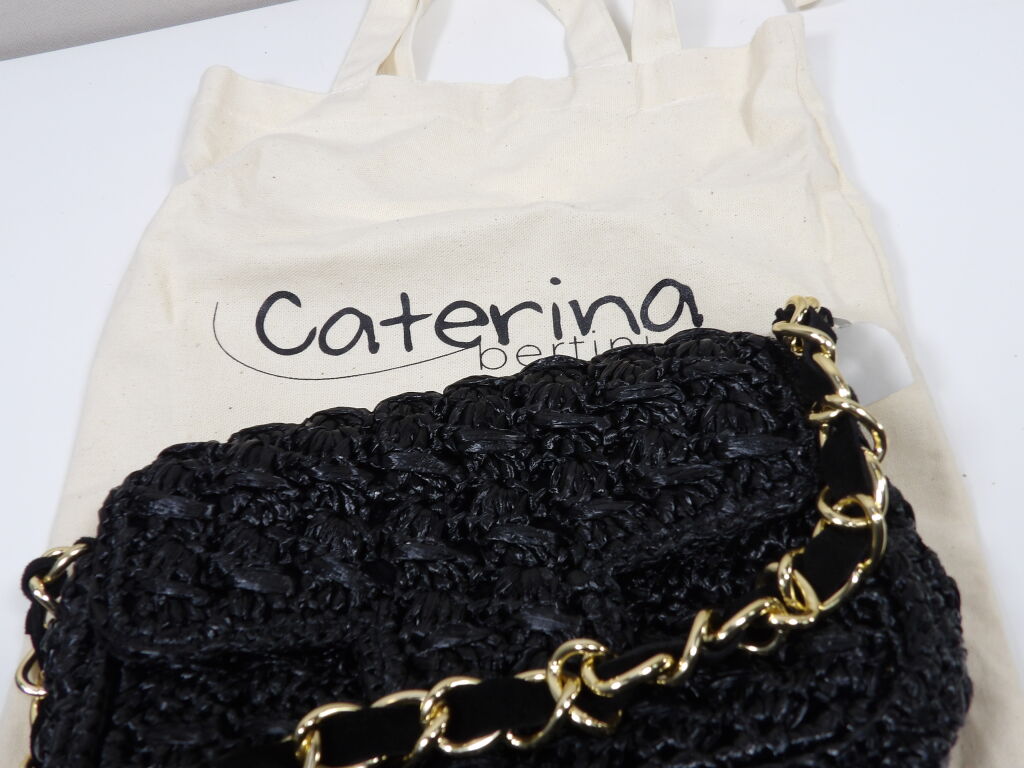 - Petit sac bandoulière en raphia tressé noir - Neuf avec étiquette et dust bag ( 23 x 16 x 7 cm )