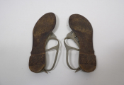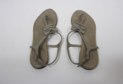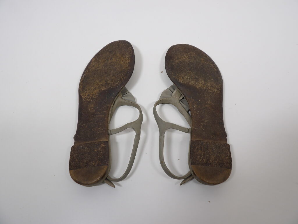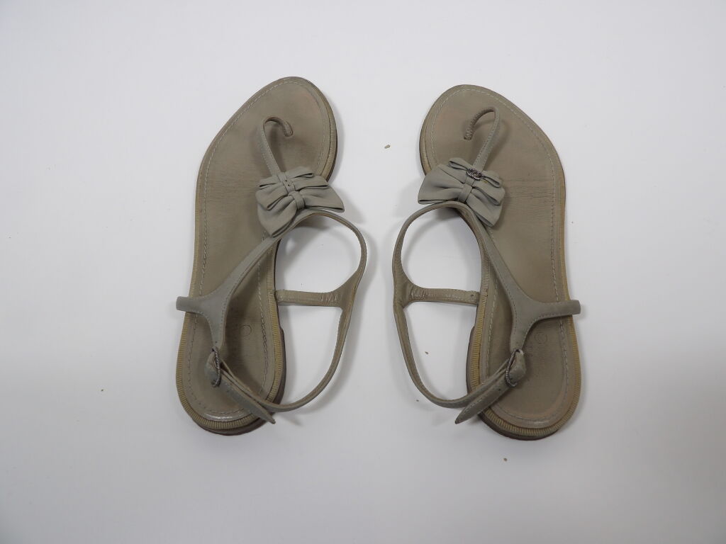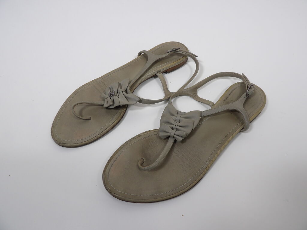 CHANEL - Paire de sandales plates cuir taupe - Taille 40? - Occasion état d'usage - Manque logo Chanel sur une