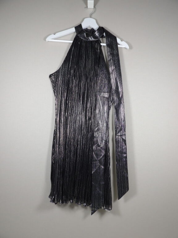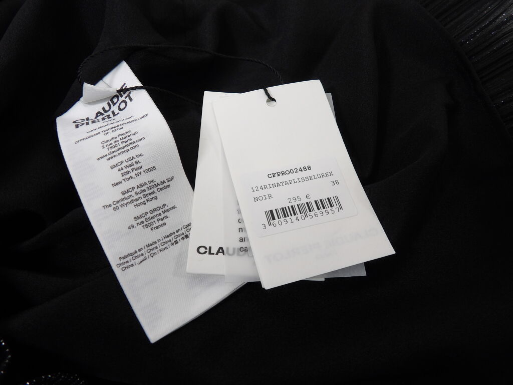 CLAUDIE PIERLOT - Robe de soirée courte noire à rayures lurex - Taille 38 - Neuf avec étiquette - Valeur 295 euros