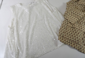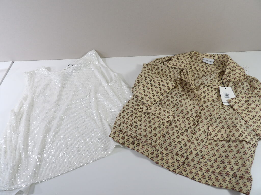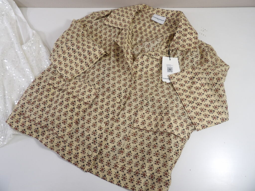 CLAUDIE PIERLOT Taille 36 : Lot de x3 vêtements FEMME neufs ! Joli top à sequins blanc avec dos nu voilé, Robe noire idéale pour le Nouvel An et un chemisier à motifs vintage.