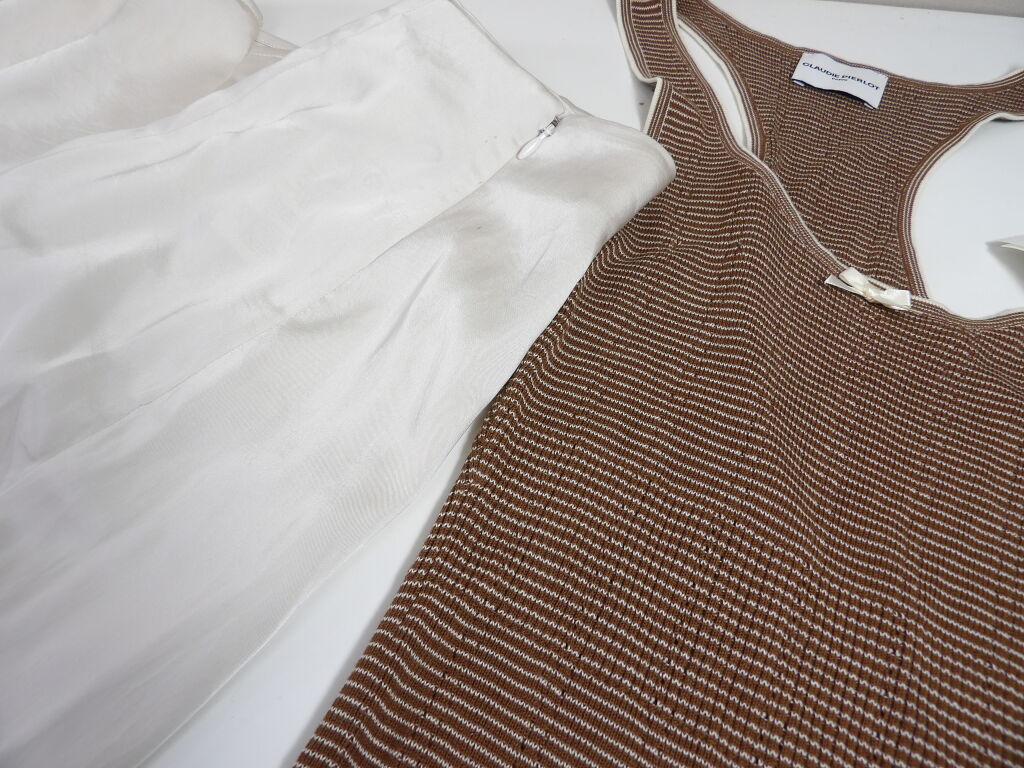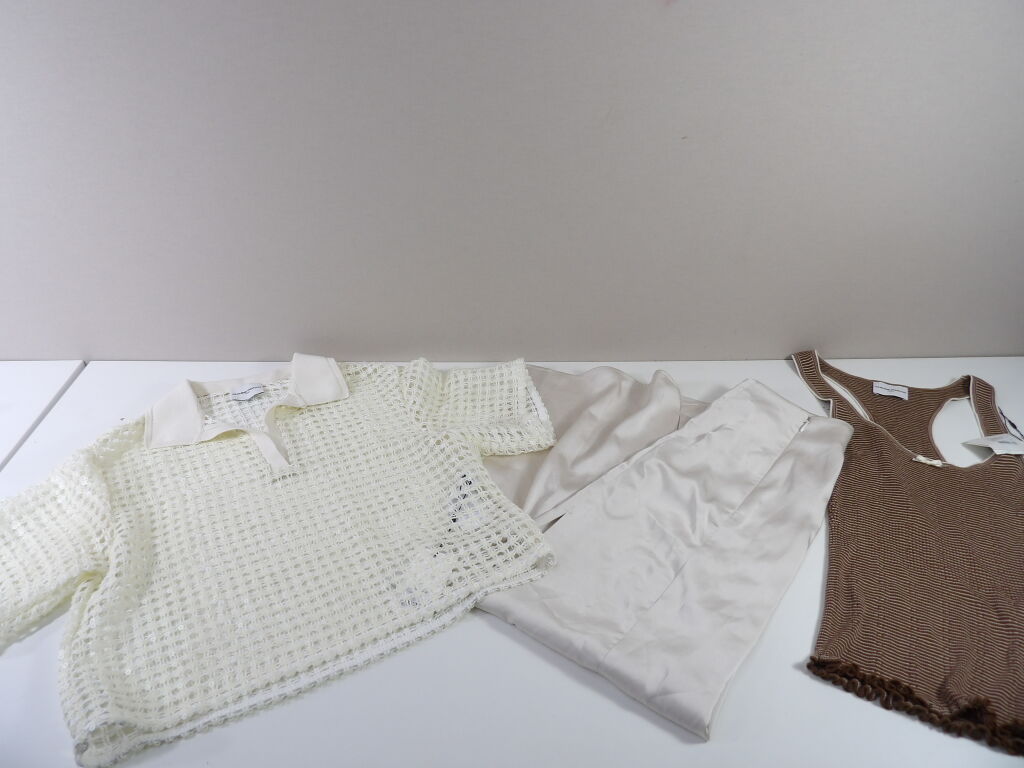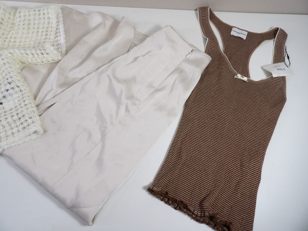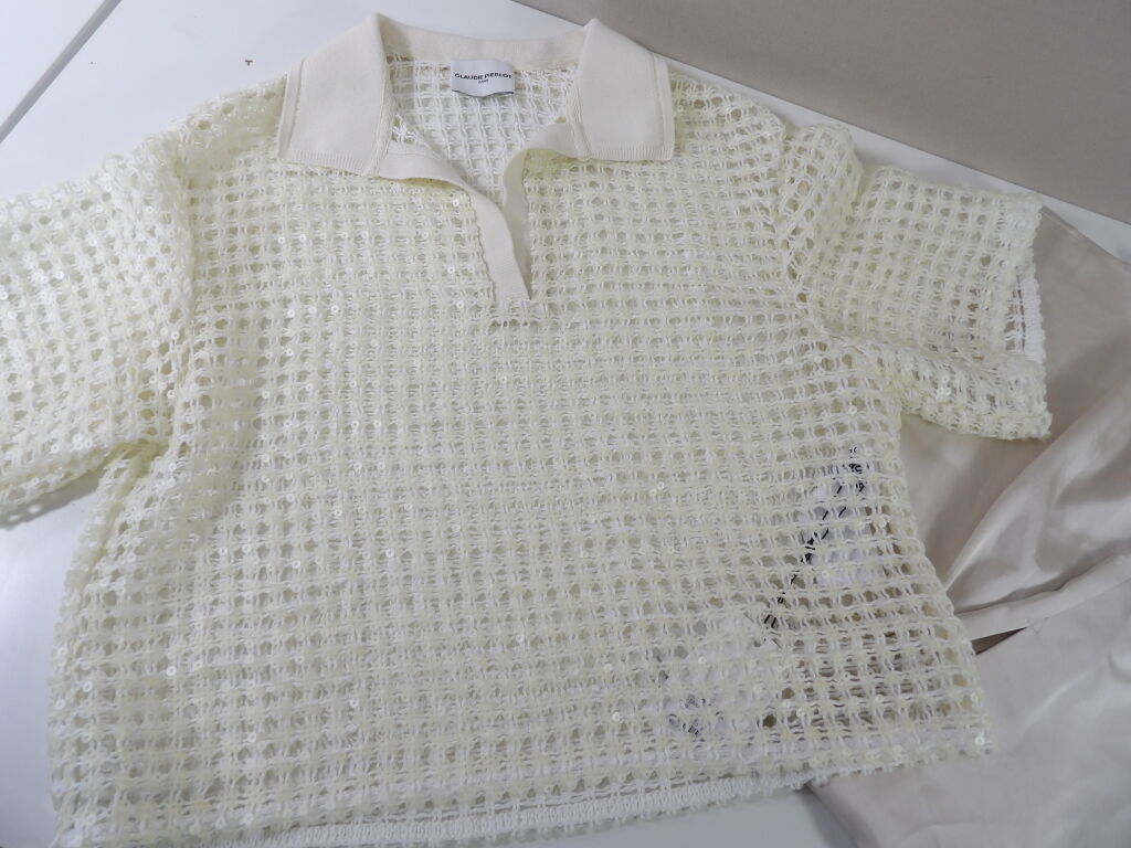 CLAUDIE PIERLOT Taille XS / 34 : Lot de x3 vêtements FEMME neufs ! Polo perles, jupe effet satin et débardeur en tricot.